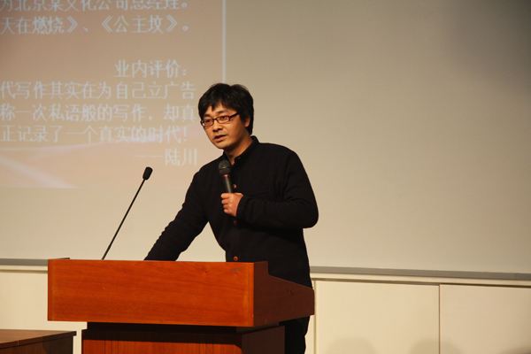 、外国语言文学学院、经济与工商管理学院和艺术与传媒学院等部院系共400余名共训班学员到场参加了培训。 张五毛作了题为“一个理想主义者的奋斗”的演讲。在讲座中,他以一个奋斗者的角度跟大家分享了自己从穷困潦倒、堕落无志到理性成熟、小有所成的人生历程和感受,同时介绍了自己写作的经验。张五毛在演讲中强调作为一个年轻人要有自己的理想,并且在生活的挫折和考验面前要学会坚持自己的理想、勇敢地担负起自己的责任,将履行责任和实现理想作为一个统一的过程看待;同时张五毛鼓励同学们要积极地面对自己的大学生活,要多看书、多游历、多见闻,同时培养一个健康的爱好,从而建立起使自己在困难时期仍然能够积极乐观的精神享受。结合现在的风气和时局,张五毛鼓励我们要用理性、健康、阳光、自信的心态来看待当今的社会,努力培养自己的公民素养和文明理性,实现自己的现代化,努力将自己身上的封建余孽和阴暗思维剔除掉。 在座同学们被张五毛丰富的人生经历和生动诙谐的语言吸引。尤其是张五毛将自己当做同学们的朋友,而非自看做学识渊博的学者亦或是事业有成的成功人士,更加使得同学们感到亲切。在聆听张五毛的讲座中,同学们笑声连连,但是从轻松的语言中,又体会到努力奋斗的不易和坚持理想的可贵。但是经过张五毛的一番分享和开导之后,大家又满怀热情和志愿,都想在毕业之后通过自己的努力和奋斗开拓出一片属于自己的天地。 在讲座结束后,有一位来自漫画网站