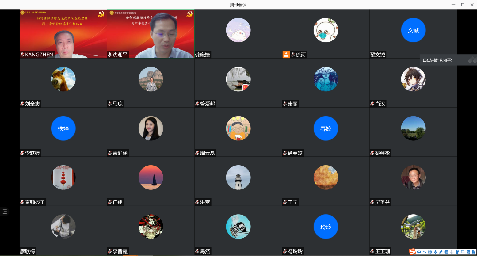 党委理论学习中心组成员,物理学系、新闻传播学院、继续教育与教师培训学院的100多名教师党员认真聆听了讲座。 沈湘平教授从习近平总书记在庆祝中国共产党成立100周年大会上的讲话谈起,围绕“坚持把马克思主义基本原理同中华优秀传统文化相结合”的重要理论观点进行了系统的分析与深入的解读,阐明了马克思主义基本原理与中华民族优秀传统文化相结合的基本意蕴、历史根基与重要前景。 在本次讲座中,沈湘平教授探讨了马克思主义基本原理与中华优秀传统文化相结合的基本意蕴,认为它既是马克思主义基本原理与中国具体实际相结合的应有之义,也具有特殊的理论针对性和现实意义。坚持马克思主义基本原理与中华文化优秀传统相结合的理论思想符合马克思反对教条主义、机械主义的基本原则,也离不开一代代共产党人对中华优秀传统文化的历史传承。最后,沈湘平教授立足于当下百年未有之大变局,从历史与未来的双重视角指出,中国特色社会主义既传承了中华民族的优秀传统文化,又致力于创造人类文明的新形态,具有不可替代的优越性。 康震教授指出,沈湘平教授非常详细地解读了马克思主义基本原理与中华民族结合的若干理论问题,在思考马克思主义继续中国化等方面走在了前沿,既对学术研究有重大指导意义,也对未来的社会实践、思想实践有重大指导意义,留给我们很大的继续思考与探讨的空间。 讲座结束后,参会教师通过留言板向沈湘平教授表示了感谢。沈教授对坚持马克思主义基本原理与中华优秀文化相结合的理论解读,使得参会教师更加深刻地认识到自己肩负的历史重任与时代使命,纷纷表示要切实在学术研究中贡献自己的力量。