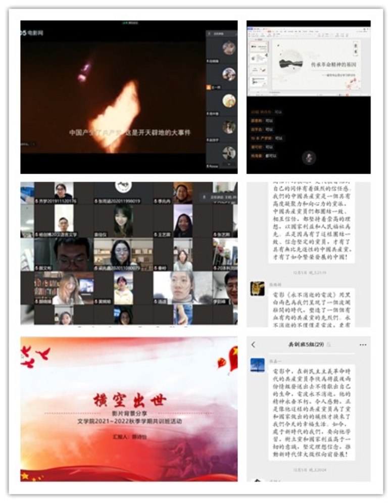 党委副书记周云磊老师以《时代变革中的师大中文》,为题,通过追溯师大峥嵘跌宕的历史岁月,讲述了前辈学人与国家民族命运相连的感人事迹,激励共训班学员继承文院光荣传统,勇于承担新的历史使命。 按照疫情防控的要求,本次共训班在实践学习方面采取了线上线下相结合的方式。学员们对马克思主义经典著作、党的十九届六中全会文件等进行了专题学习研讨,并主办红色影片观影交流等活动,进一步提升、巩固学习成果。通过本期培训,学员们对党史和党的基本理论知识、十九届六中全会精神、漫画网站