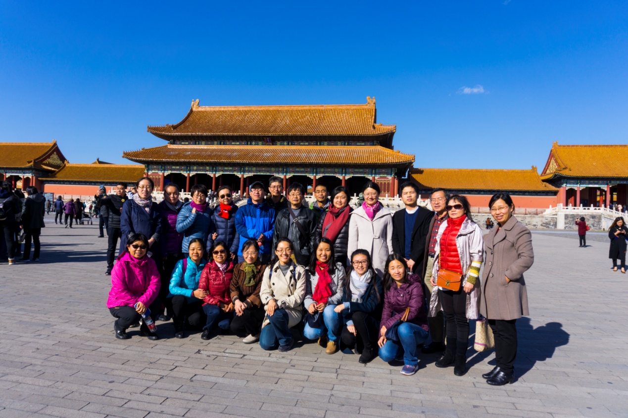 前往参观的教职工队伍在学校科技楼前统一乘车前往故宫博物院。故宫博物院推出的“千里江山——历代青绿山水画特展”共分为两期,共展出文物86件套,其中第一期除《千里江山图》以外,还包括隋代展子虔《游春图》等,而第二批展品则包括宋代赵伯驹《江山秋色图》等难得一见的真品。同期,赵孟頫书画特展也在故宫博物院举办。老师们在参观过程中不时交流,惊叹于中国青绿山水画的高超技艺,绵延不绝的青绿山水画传统,更觉作为中华优秀文化的传承者和弘扬者,责任重大。大家一致认为,要深入贯彻学习十九大报告精神,坚守中华文化立场,坚定文化自信。