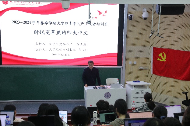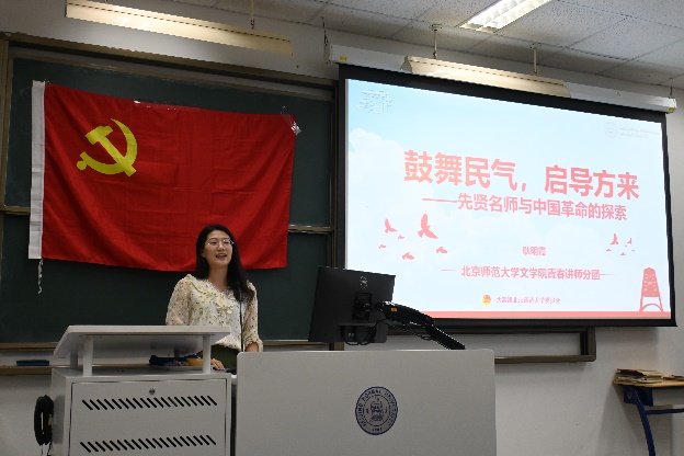 党委书记周云磊老师、党委副书记冉欣老师为参训学员带来理论讲座。周云磊老师从时间线索出发,追溯“时代变革里的师大中文”,回顾了师大中文学科在上个世纪30年代中期到50年代的发展与前行之路。周老师始终结合时代背景探索历史事件与漫画网站