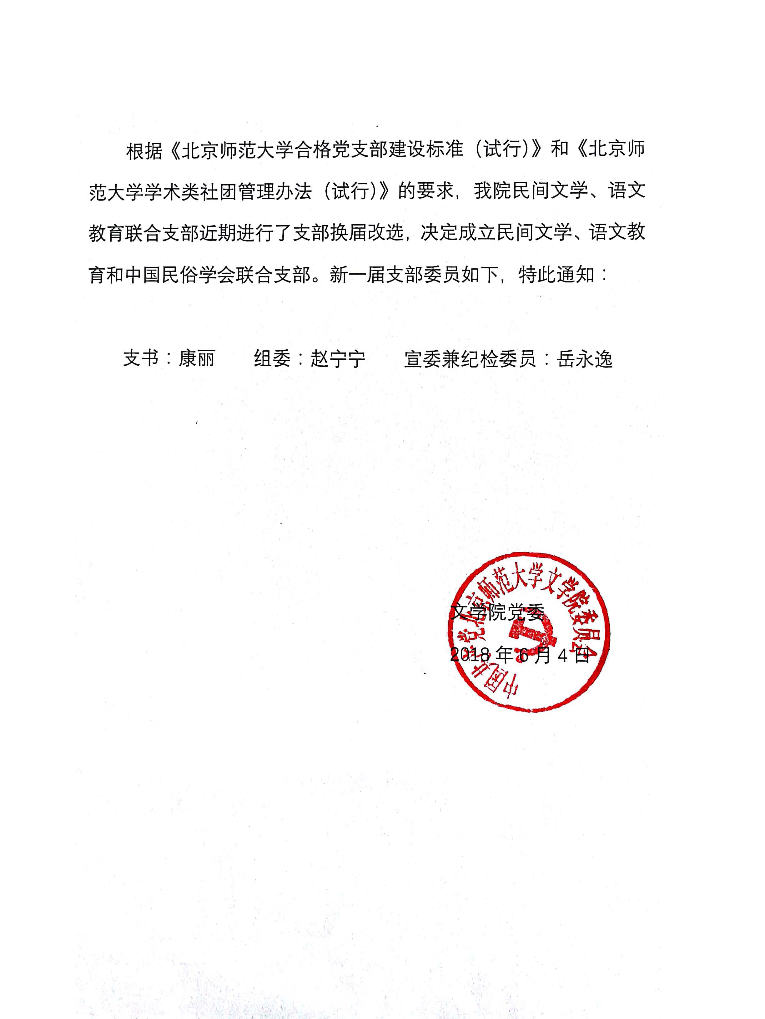关于成立民间文学、语文教育和中国民俗学会联合支部的通知