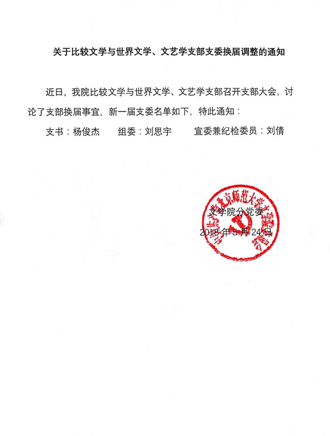 关于比较文学与世界文学、文艺学支部支委换届调整的通知