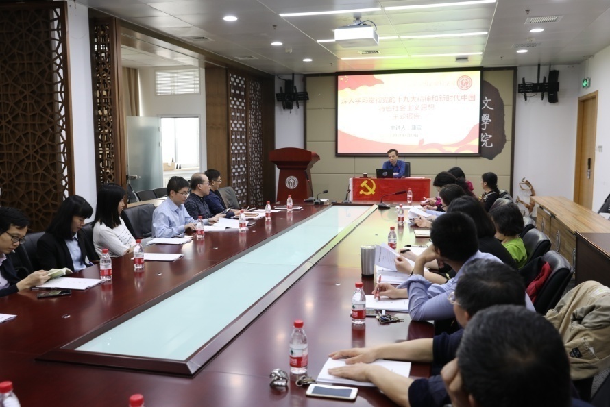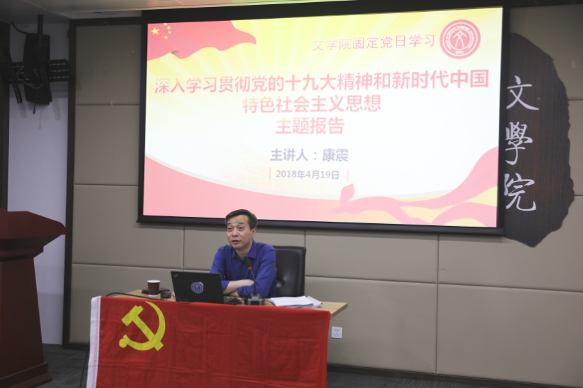 党委举行4月份固定党日学习,邀请康震书记做主题报告。各教师支部书记、党员代表参加了学习,活动由副书记方红珊老师主持。 康震书记做主题报告 康震书记为大家做了《深入学习贯彻党的十九大精神和新时代中国特色社会主义思想》的主题报告。康书记围绕“为什么学、学什么、怎么学”展开,紧扣学习十九大精神的实质并结合自身学习体会,为大家做了细致解读。康书记特别强调了党员意识、党员纪律的重要性,要求全院党员要牢固树立“四个意识”,加强师德建设,强化责任担当。 报告会现场 之后康书记又带领大家认真学习了学校2018年工作要点、学院党委2018年工作要点以及学校师德师风建设相关文件。康书记指出,在学校推进“双一流”建设的大背景下,全院党员要有紧迫感和标杆意识,找准定位,将理论学习与自己的本职工作相结合,与学院的中心工作相结合,与学校的改革发展相结合,推动学院快速发展,助力学校“双一流”建设。 方红珊副书记做相关通报 报告会后,方红珊副书记就成立漫画网站