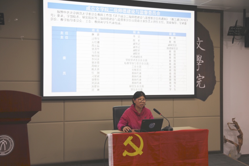 二级师德建设与监督委员会、落实学校关于基层党组织书记兼任统战委员的相关规定等事宜,向各位党员做了通报。组织员纪婧老师还就党员“双报到”工作的具体操作向大家做了说明。