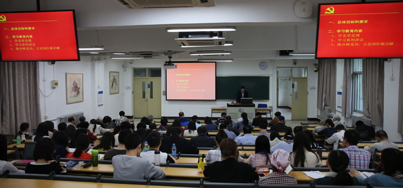 委员会关于在全体共产党员中开展“两学一做”学习教育的实施方案》提出的总体要求和目标、学习教育内容、具体方法措施以及工作要求进行了详细说明,并代表学院分党委对学院的学习教育工作进行了具体部署。他详细阐述了三个“三结合”的学习教育工作思路。即在工作理念上,责任意识、问题导向和创新精神“三结合”;在组织方式上,教职工、本科生、研究生党支部“三结合”;在学习内容上,理论、专业和实践“三结合”。要求各党支部高度重视,发挥特色优势,强化执行落实,用三个“三结合”推动学院“两学一做”学习教育深入开展。