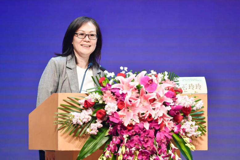 北京市西城区教育研修学院党委书记、院长石玲玲做《落实“双新”理念的思考与实践》主旨报告