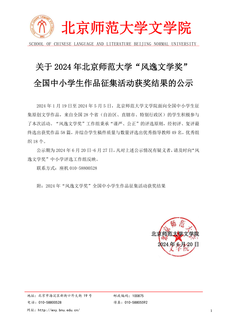 关于 2024 年漫画网站 “风逸文学奖”全国中小学生作品征集活动获奖结果的公示.pdf