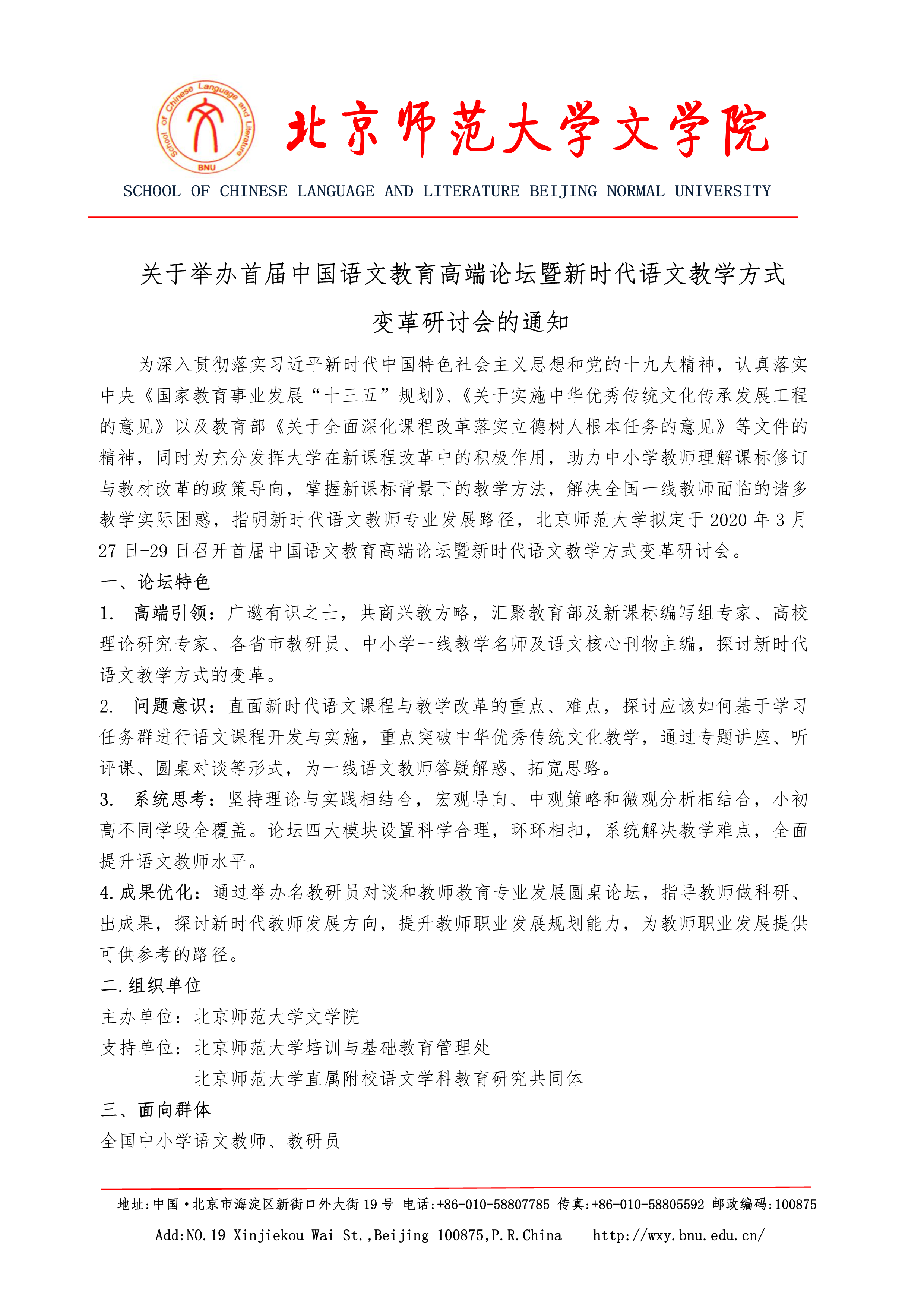 关于举办首届中国语文教育高端论坛暨新时代语文教学方式变革研讨会的通知