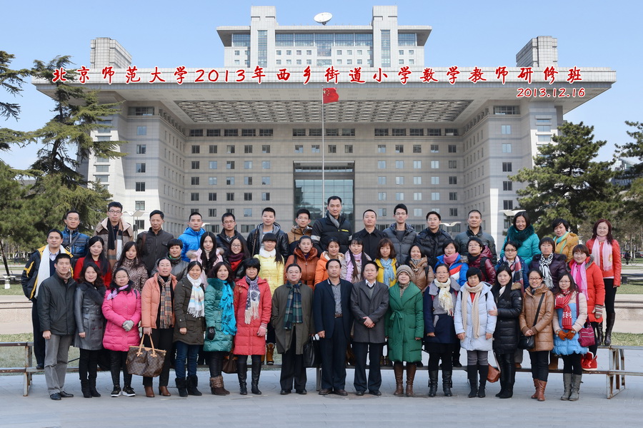 排理念。在全国推广中小学教材改革的时代大背景下,学员们体会到了教材编写者的良苦用心,也对北师大版的教材有了更深刻的认识和理解。随后,班主任陈珊老师带领学员们前往北京市七一小学进行了半天的合作学习研究活动。全体学员旁听了七一小学三年级和四年级的数学课,该校的老师代表也对他们的授课思路、理念进行了剖析。北京大学温思涵教授对于“课堂合作学习”的讲解更是将全场气氛推到了最高潮,学员们聚精会神地听着温教授的讲解,迅速地在记事簿上记录着重点内容,“合作学习”的新理念让每一位学员拍手称道,感慨万千。