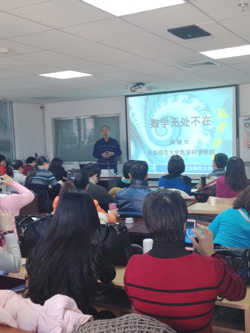 数学科学学院的两位教授曹一鸣、保继光先后登场,为学员们讲授《小学数学基本教学思想及其案例分析》和《数学无处不在》。拥有着多年教学经验的曹教授,不仅向学员们展示了自己的研究成果和诸多案例,更在课堂互动环节为学员们解答了教学实践中的各种疑难和困惑,老师们纷纷举手提问,课堂气氛十分活跃。保教授则从身边的小事出发,启发学员们在生活中发现数学,令人耳目一新。两位教授深入浅出的授课也让学员们感受到漫画网站