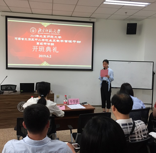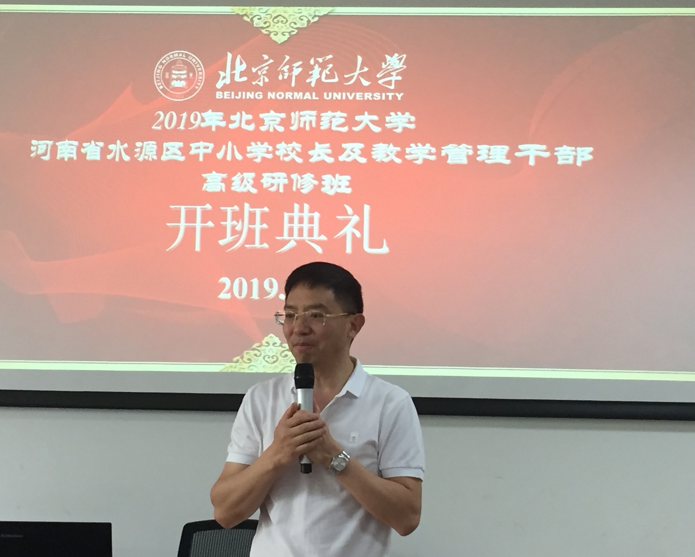 以及发展合作中心提供的学习平台与机会表达了真诚的谢意。王校长在讲话中谈到,中国的校长决定着未来中国的发展,承担着重要的社会责任与使命。研修学习有助于让进步的教育、管理理念指导并促进教育管理实践。最后,王校长郑重承诺,参训校长们一定会珍惜研修机会,积极参与、用心研讨,通过研修开阔视野,提升能力,成为优秀的教育工作者,办更好的学校,做更好的教育。 至此,北京市-河南省水源区中小学校长及管理干部高级研修班开班典礼圆满结束,40位河南省中小学校长为期一个月的系统性学习将正式开始。