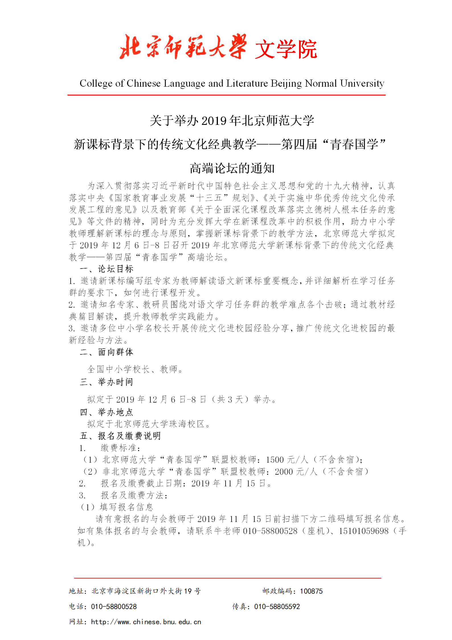 关于举办2019年漫画网站 新课标背景下的传统文化经典教学——第四届“青春国学”高端论坛的通知