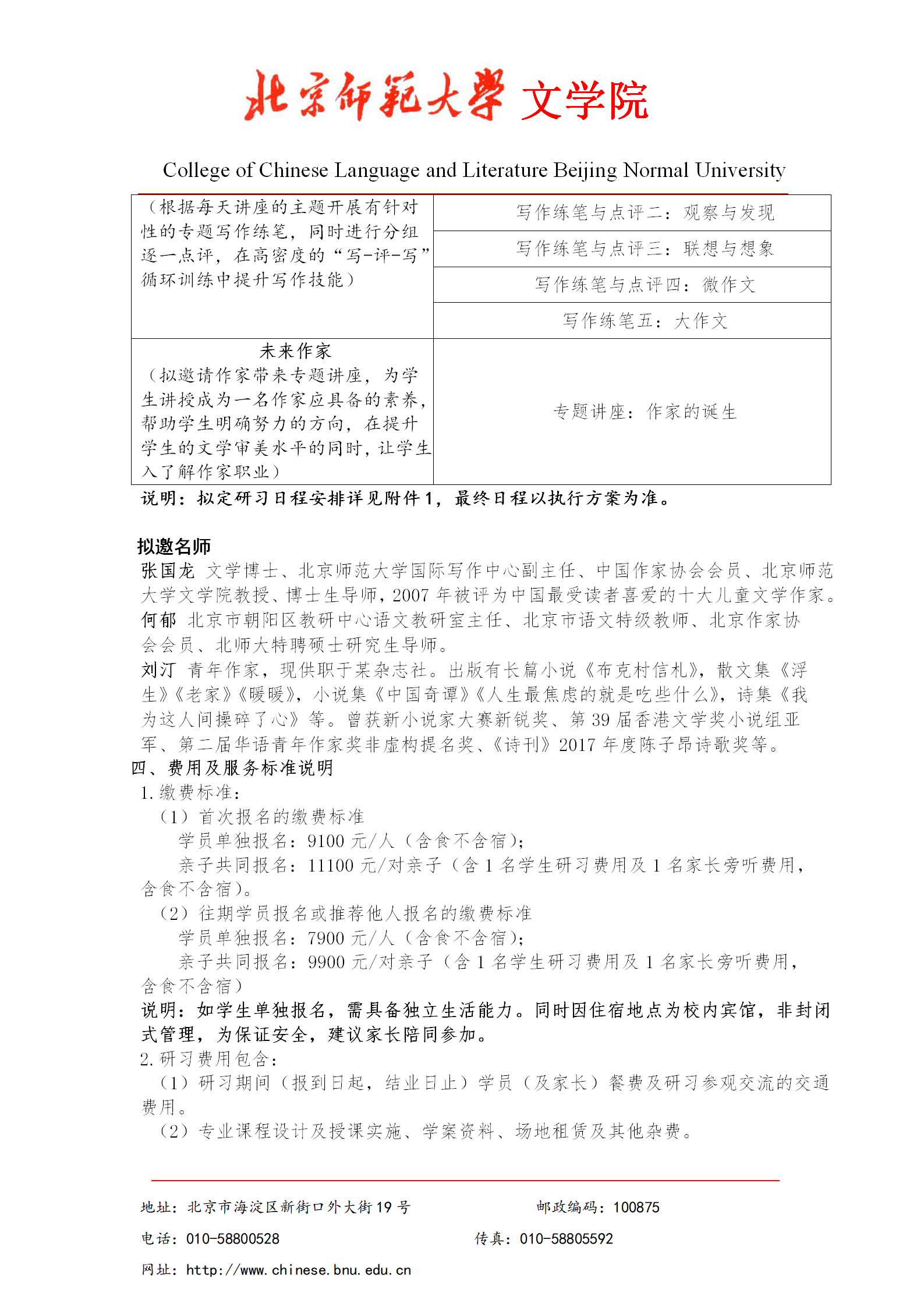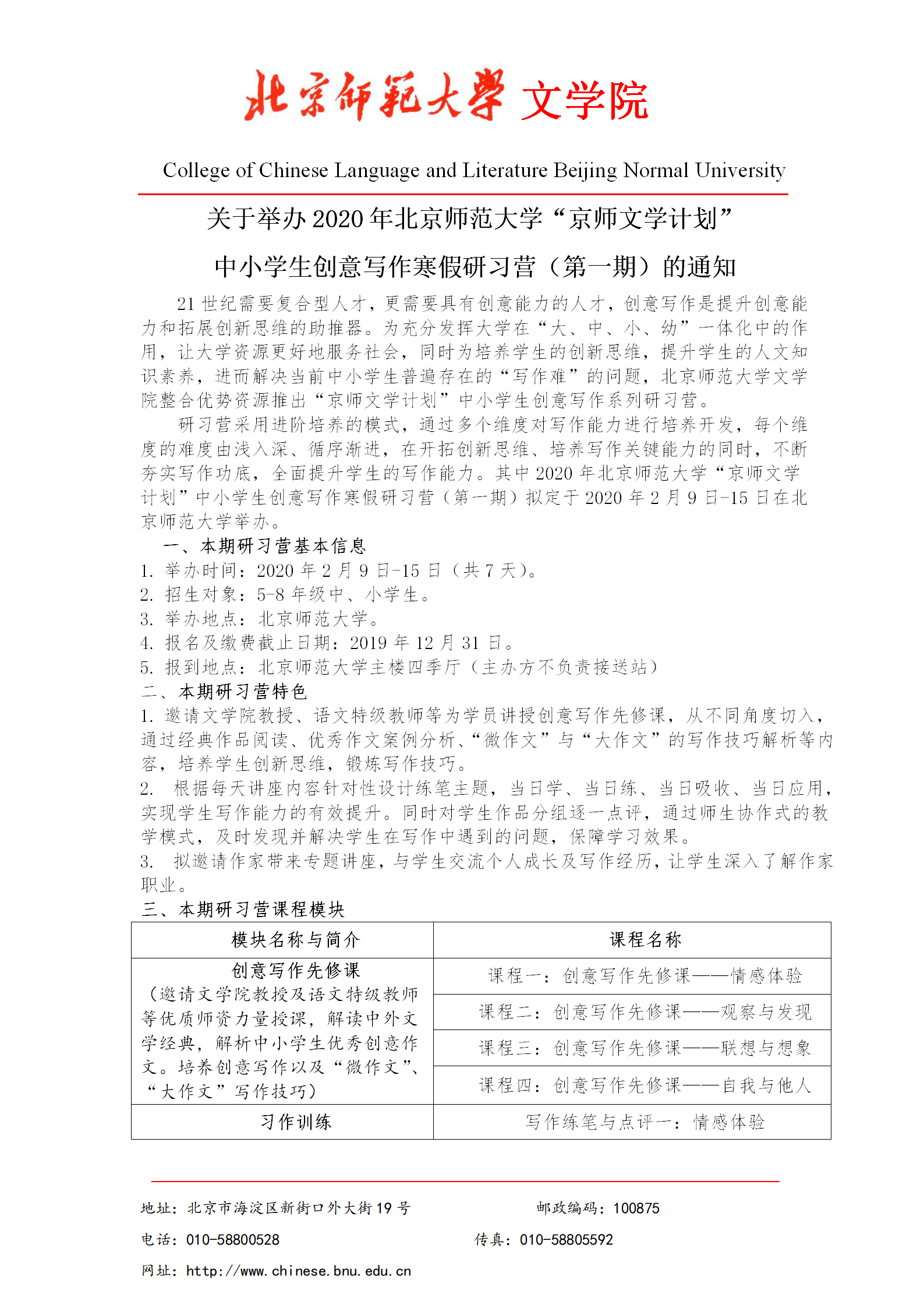 关于举办2020年漫画网站 “京师文学计划”中小学生创意写作寒假研习营(第一期)的通知
