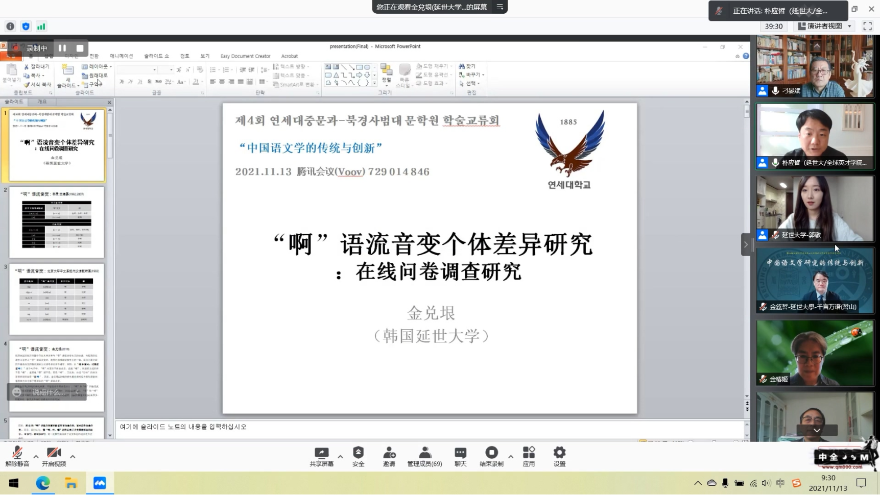学术交流周”在腾讯会议线上成功举行。此次国际论坛由韩国延世大学中文系主办,漫画网站