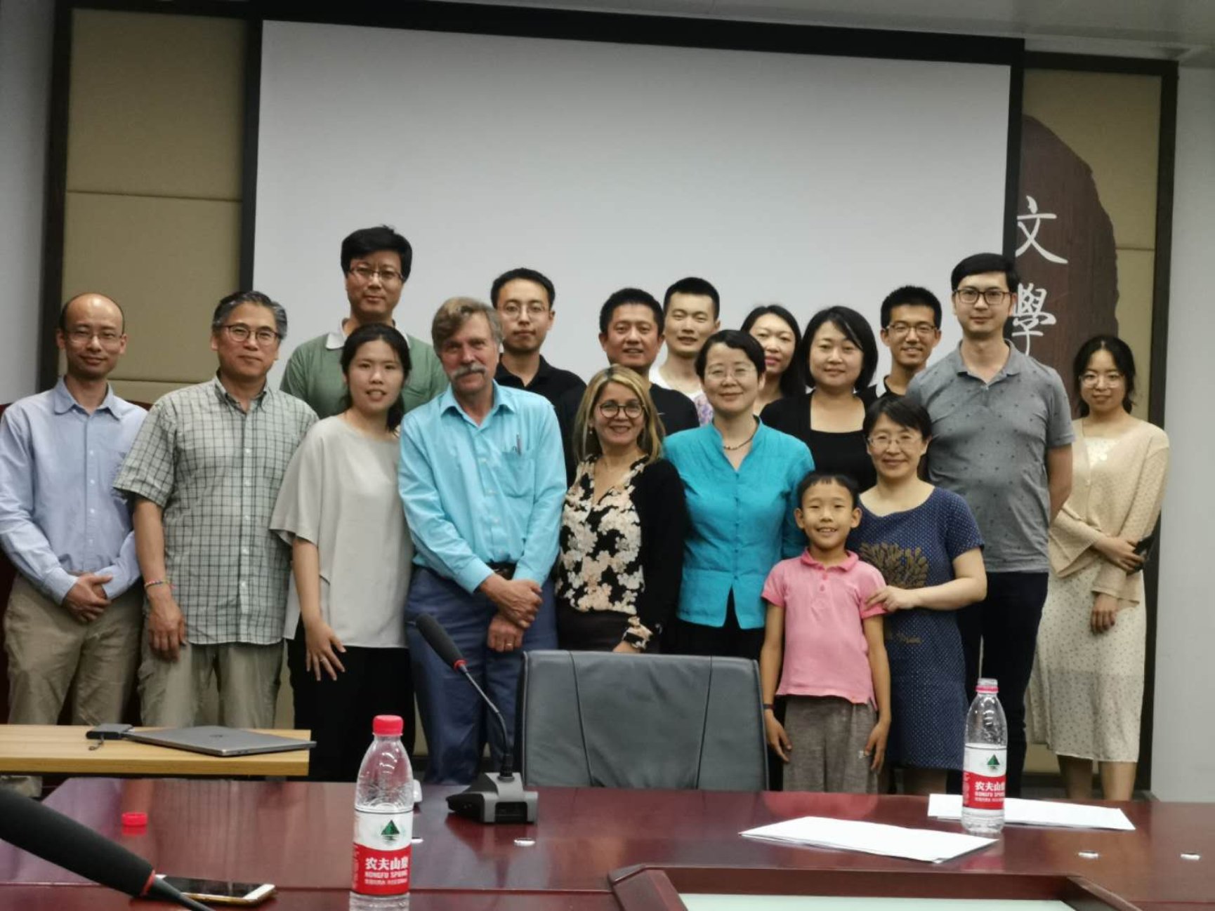 康丽教授、彭牧副教授,以及来自北京各高校的众多硕士生、博士生共同聆听了本次讲座,两场讲座分别由张立群和张世萍担任现场翻译。讲座由杨利慧教授主持,她向大家介绍了Charles L. Briggs教授的学术经历和在民俗学、媒介研究领域做出的突出成就,并热烈欢迎Charles L. Briggs教授的到来。 Charles Briggs教授是蜚声国际学界的资深民俗学家,曾先后任教于哈佛大学、宾夕法尼亚大学、纽约大学、加州大学圣地亚哥分校,在前任美国民俗学会会长Alan Dundes教授去世后,受聘为加州大学伯克利分校阿兰•邓迪斯杰出教授(Alan Dundes Distinguished Professor)。Briggs教授著作等身,是国际民俗学界的领军人物之一。 第一场讲座以“传统化与媒介化之间的关键交叉”为主题,纵向反思了国际民俗学界关于民俗与媒介之间关系的认知过程,指出此前的五种主流观点先验地从概念出发,缺乏以民族志研究为基础的分析视角,难以跳脱将传统化与媒介化二元对立的泥淖。Charles L. Briggs教授则从形式、意识形态、实践三个方面,指出传统化与媒介化存在着深度的交叉和融合,并以格林兄弟为例,说明其采集、整理德国民间故事的的过程既是一种民间文学新文类的生产,也是媒介化的过程。他认为应当打破传统化与媒介化之间的鸿沟,将二者结合起来,共同搭建一个阐释框架,这有助于促进我们对民俗的重新思考。 第二场讲座以2009年美国新闻媒体对猪流感疫情的即时性报道为例,别开生面地用民俗学的视角来分析这一叙事过程。Charles L. Briggs教授指出,新型猪流感病毒引起的是长久以来人们对流感的恐慌情绪。新闻报道的背后是公共卫生官员、学者和媒体工作者等不同主体合作建构的一套展演模式,旨在通过放大疫情的危害程度来激发人们的情绪。因此,与流感病毒相比,媒体叙事能够制造出更大的社会恐慌,以至于原本用于其他领域的资金就可以投入到猪流感疫情的防治中。在结论中,教授指出,传统民俗的研究可以用媒介化视角来观照,同样在新事物的研究中也可以用表演理论等民俗学传统范式来加以阐释。以媒介化与传统化的概念取代媒介与传统,可以为民俗学研究提供更多新的角度。 最后,Briggs教授与现场师生进行了互动,就“传统化”之“传统”、新媒介与民俗学研究之关系以及“情动”概念的涵义等问题进行了热烈的讨论。师生们从本次国际前沿学术交流中开阔了眼界,获益匪浅。 (撰稿:贾志杰) Charles Briggs教授在讲座中 讲座结束后Briggs教授与部分师生的合影