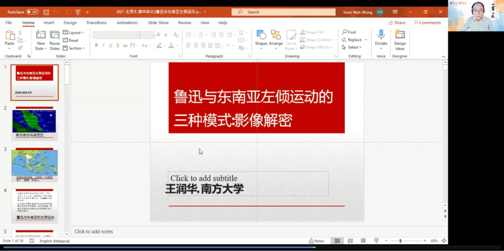沈庆利教授之邀担任主讲人,从多个侧面讲述了中国文化传统在东南亚地区的发展演进过程。 王润华教授在线上 “中华文化在南洋”系列讲座共分为六讲,时间跨度为三个星期。王润华教授的精彩讲座吸引了一大批海内外的学者和学子,听众除了北师大师生之外,还有来自北京大学、清华大学、人民大学、复旦大学、台湾清华大学、新加坡国立大学、马来西亚拉曼大学等国内外三十多所高校的学者和学生,线上师生累计近五百人。王润华教授开阔的学术视野、丰富多样的研究方法与内容,获得了海内外观众的一致称赞。 海内外学子线上提问 11月16晚,王润华教授以“郑和登陆马六甲以后:中华文化与西方、东南亚本土文化的交汇、创新、蜕变”为主题,展开了第一场讲座。王教授指出郑和七下西洋是一场和平与文化之旅,将中国文化传统带到了马六甲地区并产生了深远的影响。东南亚颇具特色的“峇峇文化”正是中国文化传统与马六甲本土文化传统结合的典范,体现了华人文化在异国创新发展的新模式。 王老师讲解郑和下西洋对马六甲地区的影响 第二场讲座于11月18日举办,主题为“移民、华侨、华裔、东南亚华人与文化”。王润华教授从“文化中国”概念出发,强调了“华人”的文化意义。他指出,世界各地的华人移民结合不同的在地文化、历史经验推动了中华文化在海外的多样性发展。以东南亚为例,新马地区华人创造出了海南鸡饭、捞鱼生等融合多元文化特色的菜肴,可以直观地反映中华文化在海外的在地化发展和创新。 于11月23日举办的第三场讲座聚焦文学领域,主题为“东南亚华文文学的多元叙述系统”。王教授将中国对东南亚的想象与书写追溯到明代郑和船队的“西洋”叙述,将《西洋藩国志》《星槎胜览》等典籍作为中国诠释东南亚文化的“大叙述传统”的开端。他指出,当前的新马华文学史只涵盖了二十世纪初年以来的白话文学,而完整的新马华文学史应该涵盖十五世纪以来的文言与白话作品,并应该注意到历史现实的复杂性,兼及跨国籍、跨国界的作家作品现象。最后王教授提出了重构新马华文文学的多元复杂系统的倡议。 王老师讲解世界华语文学的文化认同问题 第四场、第五场讲座进入到了更具体化的作家个案。 于11月25日举办的第四场讲座以“鲁迅在东南亚”为主题。王教授指出,在东南亚殖民历史时期,“鲁迅形象”与左派反殖民的社会群众运动密切结合,成为了东南亚成为反抗殖民主义的重要的道德精神力量。结合已解密的相关历史资料,他指出,南下的大陆左派文人推动了鲁迅的左派文化战士形象在新马地区的扎根与传播,而鲁迅的作品也直接对东南亚的文化与政治产生了深远的影响。 王老师讲解鲁迅与东南亚左倾运动的关系 第五场讲座于11月30日举办,介绍了老舍的南洋书写与郁达夫在东南亚的文学与政治活动。王教授认为,中国现代文学史上最早的南洋想象是老舍的《小坡的生日》,他认为《小坡的生日》是老舍对东南亚国家多民族和谐共存的预言和寓言,并非简单的童话。此外,王教授使用后殖民理论,分析了老舍《骆驼祥子》与康拉德《黑暗的心》的结构的相似之处,展现了广阔的比较文学的视野。最后,王教授简要勾勒了郁达夫在东南亚的社会政治活动轨迹,阐述了郁达夫对抗日战争与东南亚文学发展的贡献。 王老师讲解老舍《小坡的生日》 最后一场讲座于12月2日举办,侧重于介绍与分析东南亚华人文化与文学创作的发展趋势。王润华教授指出,当前的新马华文学创作呈现出“重返热带雨林”的趋势,不少本土作家采取去东方主义的视角,力图呈现多元文化与本土声音。王教授重点介绍了马来作家鲁白野、商晚筠等对热带雨林与多元族群的书写。讲座的最后,王教授提出了从“双重传统”看“世界华文大同文学”的倡导。他指出,由于华人移民的迁移与落地生根,世界各地的华文文学以融合“中国文学传统”和“本土文学传统”两种传统的方式发展着,如今,需要从多元文学中心的观念看世界华文文学。 王老师向大家介绍东南亚的创作情况 王老师在线上答疑 “中华文化在南洋”系列讲座吸引了海内外众多师生参与,也得到了较好的响应与反馈。总的来看,王润华教授从历史到现状,详细分析了中华文化传统在东南亚地区广泛而深刻的影响以及华人文化在东南亚的创新化发展,也将理论结合具体的作家文本,较为全面清晰地勾勒了新马文学创作与研究的历史与现状。讲座期间,大量师生在线上与主讲人王润华教授进行互动交流,讲座氛围较为活跃,调动了大家对中华文化的海外发展这一话题的兴趣,也让更多学子关注到世界华语文学的创作与研究。期待漫画网站
