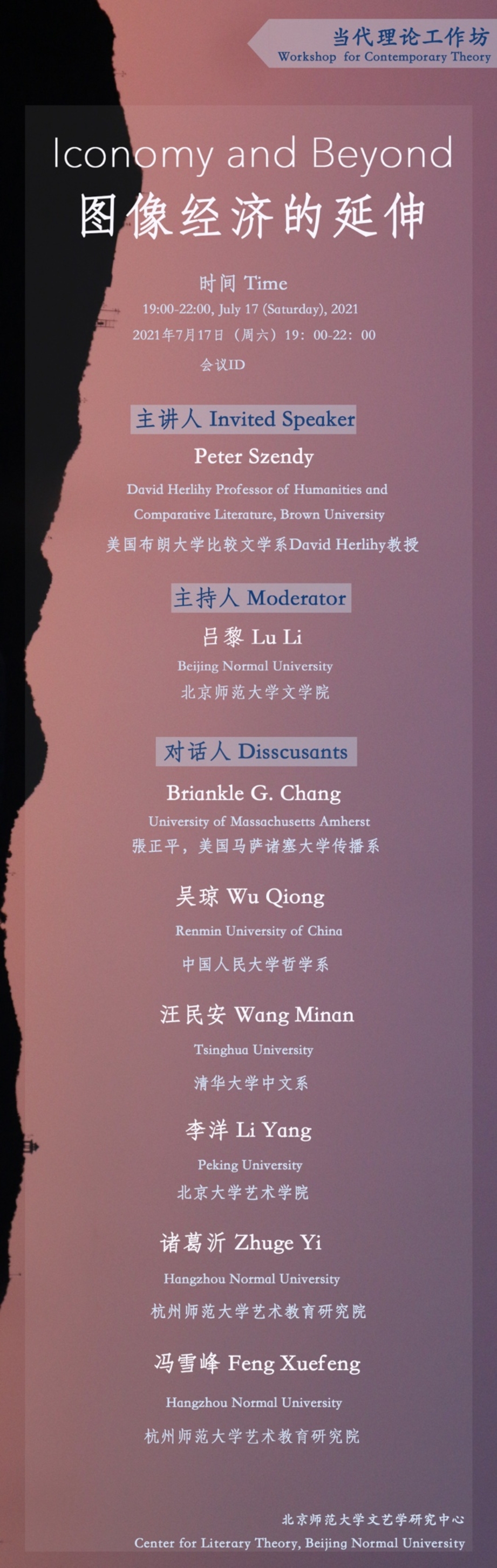 2021年7月17日,文艺学研究中心吕黎老师主持的“图像经济与视觉超市”(Iconomy and the Supermarket of the Visible)当代理论工作坊在线上通过Zoom成功举办。法国当代哲学家和理论家Peter Szendy在其著作《可见物超级市场》(Le Supermarché du visible,法文版2017,英文版2019)中,提出了iconomy(图像经济)的概念,主张从“图像经济的重要性及其存储、流通速度、构成材料和价值波动”来理解当代社会生活。随后,Szendy参与策划了名为“图像超市”(Le supermarché des images)的艺术展览,进一步延伸了“图像-经济”的概念。在巴黎国立网球场现代美术馆(Jeu de Paume)和法国驻华大使馆的协助下,这一展览作为第十五届中法文化之春的重要组成部分,于2021年5月28日至8月1日亮相北京红砖美术馆,并迅速在中国艺术界和文化界引起广泛的关注。 在这样的背景下,“图像经济和视觉超市”工作坊以“图像-经济”和“视觉超市”概念为中心,邀请Peter Szendy向中文观众和读者进一步阐发他在《可见性超市》一书中的问题意识。工作坊由召集人吕黎(漫画网站