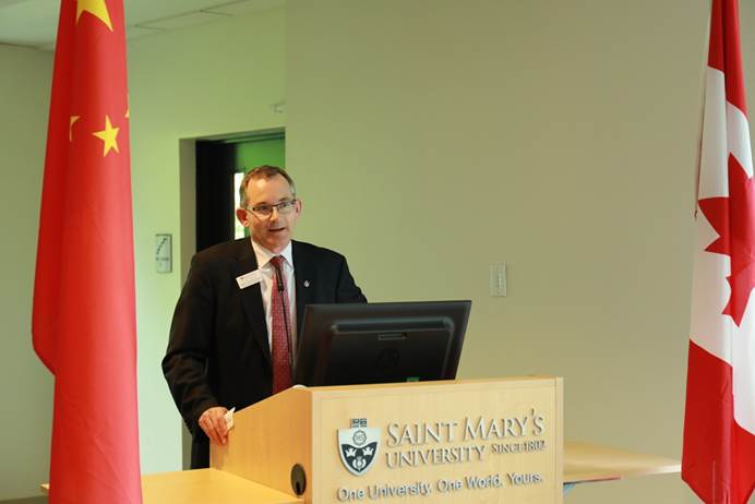和圣玛丽大学表示感谢,同时也表达能够与圣玛丽大学师生进行深入交流的期待,希望同学们能够在加拿大度过一段愉快的、收获满满的学习生活,最终能够满载而归。 会后,圣玛丽大学校长及其他校领导与同学们合影。 文/杨丽君 摄影/许智远