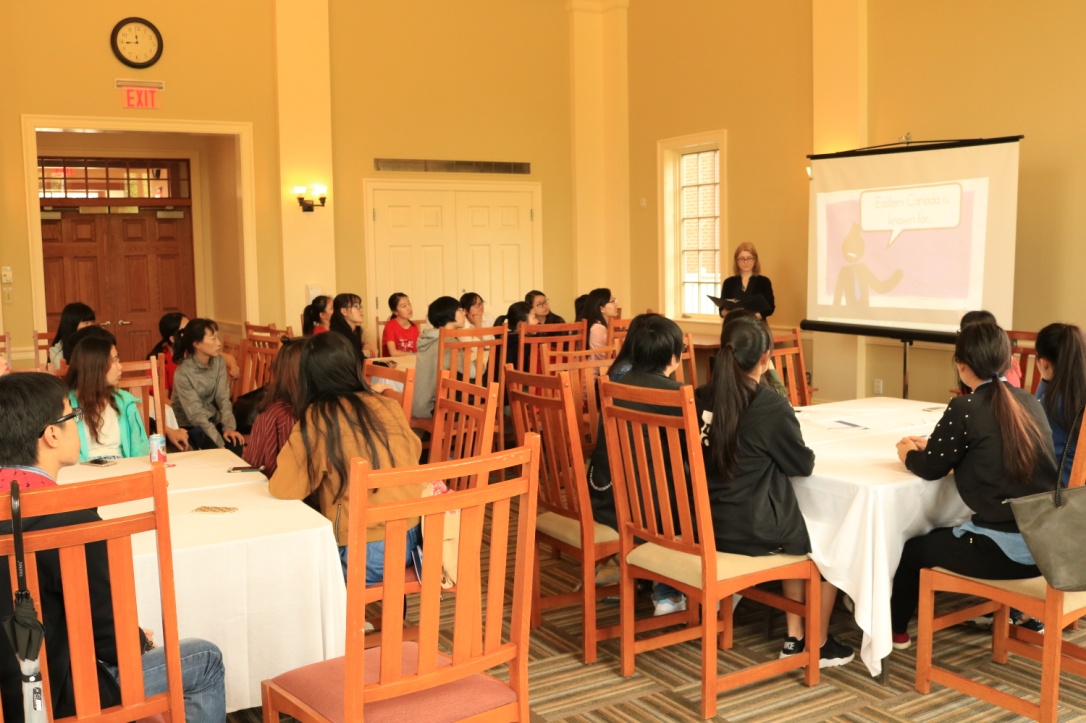学生的到来表示热烈欢迎,负责课程设置的教师对课程进行了初步介绍,并希望各位同学在两周的学习生活中能够了解加拿大及北美地区的历史、文化,同时提高自身跨文化理解和交际的能力。 项目将为学生提供亲临加拿大课堂、经历当地生活、体验北美文化的机会。项目期间将修读两门课程:北美文化与历史(分上、下部分)、学术英语,阿卡迪亚大学的老师们将采用丰富多样的教学手段和活动为同学们带来全新的教学体验。周末还安排了文化考察活动。此外,学生还有幸游览异国历史名胜。 欢迎午宴后,同学们由专人带领参观了阿卡迪亚校园、主要建筑、设施以及学校沿革。虽然天公不作美,但丝毫没有打消同学们的热情,大家也纷纷表示将珍惜这次难得的经历,并以最饱满的精神和态度迎接即将开始的学习生活。 本次小学期的首场讲座为Shutler博士关于“保护物种”讨论,Shutler教授既谦虚又热情的得体正是最为感人的魅力,接着课堂通过小组互动的方式给学生提供了大量理论与实践相结合的空间,师生互动使之更加温馨、充满家的味道,学生变被动为主动,主观意愿的活跃投入使教学氛围别有生趣,语言、学术、文化的和谐融合正式开启了此次加拿大跨文化交流的篇章。