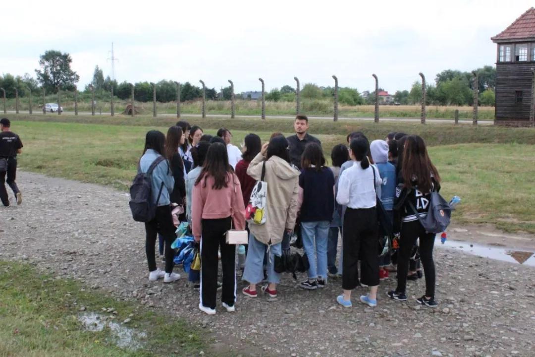 在波兰首都华沙学习了快两周之后,我们前往波兰旧都克拉科夫。 在克拉科夫,幽默风趣的啤酒先生(Mr Beer)带我们先后参观了雅盖隆大学、中央广场、圣母圣殿钟塔、维瓦尔教堂、奥斯维辛集中营等地。 ① 克拉科夫 克拉科夫,英文名Krakow,波兰旧都,也是维瓦斯族人的故乡。曾两度受奥地利统治,1918年随波兰独立而回归波兰。与华沙相比,二战中受到的摧毁更小。现为波兰第二大城市,是波兰重要的水陆交通枢纽,工业中心;有博物馆、维瓦尔宫、城堡、教堂等名胜古迹,尤以奥斯维辛而为人熟知。 ② 雅盖隆大学 ③ 老城中心广场集市 走过雅盖隆大学,就来到中央广场。广场上,鸽群飞舞,教堂林立,这里汇聚了克拉科夫老城众多地标性建筑,如圣母圣殿、市政厅、密兹凯维奇巨型雕像。据介绍:这里曾是克拉科夫的市中心,商人们在这里建立了工艺品交易厅。现在,广场成为著名的旅游景点,我们看到,广场上举着各国国旗的游客熙熙攘攘,人流量明显高于华沙。环广场绕行的马车,增添了中世纪的氛围。广场中的大厅一层是纪念品商品店,二层是国家博物馆画廊,收藏着18至19世纪画家的作品。 ④ 圣母圣殿 圣母圣殿是一座砖砌的哥特式教堂,第一次看到它时,Mr Beer向我们说起了关于它的“两兄弟”的传说,引起了我们的强烈好奇,不过最终确定:它们建于不同时期,由于外观不对称而又紧密相连而被人们赋予了美好传说。走到它的背面,刚好钟楼顶部响起号角声,我们停下和周围人一起朝顶楼挥手示意。老师介绍道:每隔一小时,从钟楼顶部会响起号声,曲调在中途中断,纪念13世纪著名号手,它在蒙古人袭击城市时发出警报而被弓箭射中喉咙。 ⑤ 维瓦尔城堡 沿街而行,我们看到了大大小小无数教堂,每至一处,幽默风趣的Mr Beer先生就会停下给我们做简单的介绍。爬至山顶,就到了维瓦尔城堡。一路上,我们看到许多砖砌的古老城墙,据说是为抵御外族入侵而建。看到护城河的时候,老师和我们说起“龙”的传说,相传也是克拉科夫这座城的来历。而维瓦尔城堡,则是波兰最古老的宫殿,从10世纪起就作为许多国王的宅邸,许多国王的加冕仪式就在这里完成。同学们笑谈:从气魄宏伟又雕饰精美的建筑上,不难想象当时王公贵族们的奢侈生活呀! ⑥ 奥斯维辛集中营 去波兰,去克拉科夫,怎能不去奥斯维辛呢?克拉科夫的最后一站,我们选择去奥斯维辛集中营。不知是心理作用,还是因为淅淅沥沥的小雨天气,一路上感觉越是接近奥斯维辛,就越能嗅到死亡的气息。集中营中大片草地和零星野花,有同学猜测,这里只能长草。跟随着Mr Beer的步伐,我们走进了一幢幢具有浓烈霉味的“房子”里:被称作医院的地方,其实是密密匝匝的圆形坑;所谓的厨房,只有一个已经坍塌了的灶台;所谓的居所,是紧密排列着的三层床,据说每张床要塞进5-10个成年人。以及,在二战即将胜利时被炸毁的毒气室遗迹。于是,大家的思绪便被中学时代那篇《奥斯维辛没有什么新闻》的新闻报道牵引:“今天,在奥斯维辛,并没有可供报导的新闻。”没错,这里没有什么新闻。 课程学习 回到华沙,我们继续之前的专题学习,主要包括音乐、绘画、波兰女性三方面。 ① 音乐 音乐主要是讲座“A Subjective Guide to the History of Polish Popular Music”、“Polish Songs:Top10 of All Time”及“Polish Classical Music”三场讲座中涉及。老师们给大家播放了不同时期和不同类型的曲目,Agnieszka Wronowska老师还弹起吉他,教我们唱起波兰传统儿歌。在歌声中,仿佛我们都回到童年,甚至有同学把它和中文版的《两只老虎》串唱。 ② 绘画 倒数第二天,Katarzyna Kolak-Danyi老师带来了“The Most Famous Pieces of Polish Art”的讲座,为我们介绍了梳理了近代波兰绘画的不同派别及派别特征,以及不同时期的著名画作及画家。最后,同学们通过小组合作的方式,找到了手中作品的对应名称及作家。 ③ 波兰女性 围绕波兰女性的话题是在讲座“Polish Women in the History and Culture of Poland”中。在这场讲座中,老师主要介绍了波兰古代、近代的著名女性,及当代活跃于体育、影视、文学的代表人物。并且,老师的这次讲座不仅有PPT展示,还带来了相关书籍让大家轮流翻阅,尽管语言不通,但翻到装帧精美的波兰语书籍时,还是比较激动哒。 经过近三周的课程学习和文化体验后,十个小组的同学经抽签选择了不同的主题进行成果汇报。同学们所选择的展示内容丰富多彩,或横向比较,如第六组的“Top10 Elements of Polish Pop-Culture: Chinese Perspective”,第八组的“Poland and Its Culture in the Eyes of Chinese People”;或纵向延伸,其他组的“Influence of WW2 on Poland”、“Polish Artists and Writers”……,从文化、政治、经济、饮食、生活方式、音乐、文学等方面,将这20天中所学所感呈现在汇报中。 经过紧锣密鼓的准备后,我们最终在华沙大学历史学院Sala kolumnowa礼堂内进行了汇报展示。据Piotr Kajak老师所说,迄今为止,这座礼堂,他一共只进来了六次。听罢,我们对这座充满古典气息的建筑更加肃然起敬,也更加郑重严肃地对待这次展示。 大家的展示得到了老师们的高度肯定,对每一小组的展示,Piotr Kajak老师都给予了相应的点评,并为每一位组员赠送了带有波兰特色的礼物。最后,在华沙大学图书馆前,Pitor Kajak老师为同学们一一颁发了结业证书,并寄语同学们努力学习,不忘华沙。 最后,我们回到Jeff’s吃了此行的最