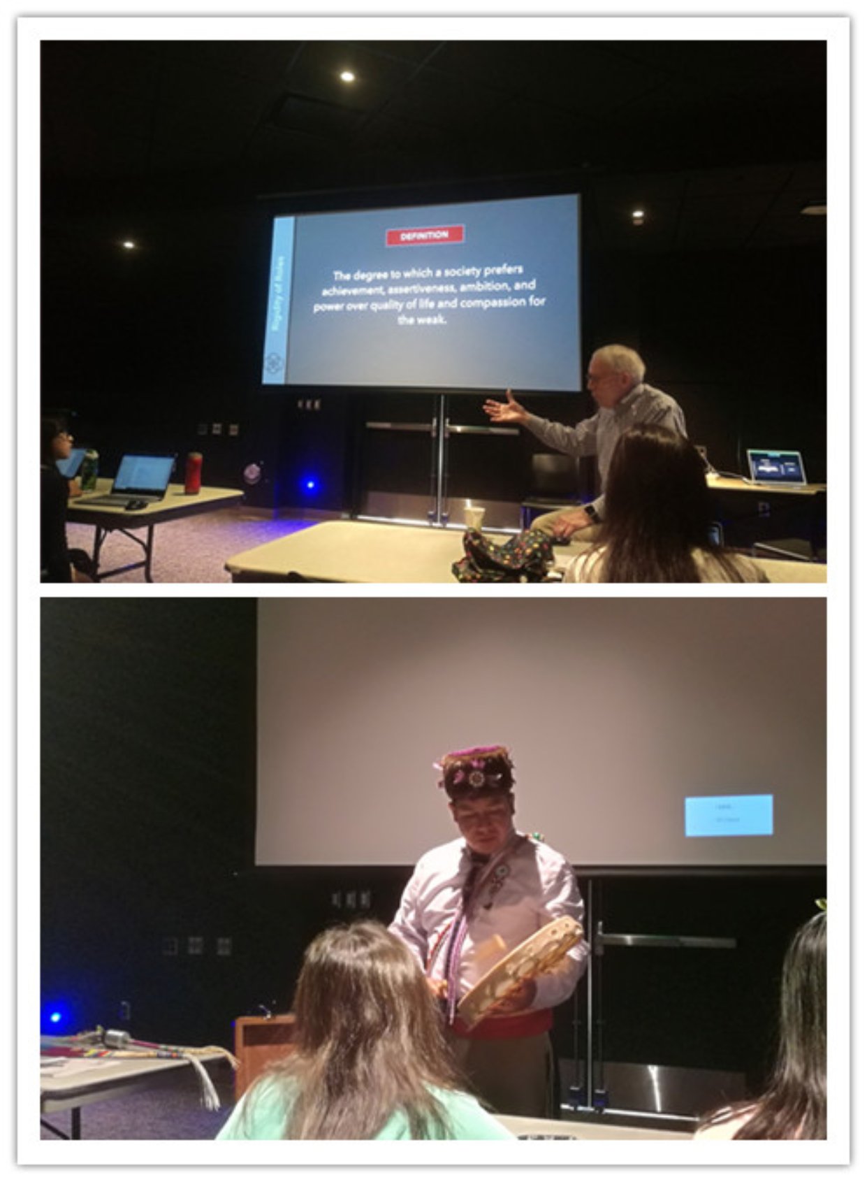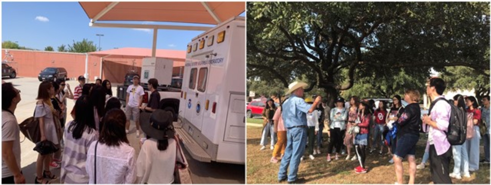 的大力支持和经费资助,没有你们的支持,我们不可能获得如此宝贵的学习机会!感谢杨利慧副院长、王潇静老师对于我们的指导和帮助。再次感谢OU校方为我们发出的访学邀请,这是我们此次学习之旅顺利成行的重要一环,感谢OU校方的所有的老师、工作人员,特别感谢苟老师、Randy、Tina的辛苦工作,是他们的细致、热情、如同对待自己孩子般的温暖的关怀,让我们在异国他乡感受到了亲人般的接待。总之,经过两校的努力合作才有我们今日成功地交流之旅。 三个月说长不长,说短也不短,对于充分利用时间的人来说,足够可以完成想要的探索。在这里我们无法展示学习生活的全貌,仅从以下几个方面进行概述,以期达到窥视全貌之效。 我们的课程涉及了Chinese-American Cross Cultural Communications(中美跨文化交际),Cross Cultural Communication(跨文化传播),Native American Literature、 History、 Linguistics、and Folklore(美国印第安文学、历史、语言学和民间文学),American Literature and Culture Course Introduction and Discussion(美国文学与文化)与Research Methology(研究方法)共5门课程。课程安排上尽量照顾到来自文学、语言学、历史学等专业的所有同学。三个月的时间,5门课程,8位老师,这为两校的师生提出了挑战。OU的老师们并没有因为我们是来自非英语国家的学生而降低要求,而是一视同仁。同学们也勇于走出自己的舒适圈,去克服语言的壁垒,同学们勤奋好学的表现也给OU的老师们留下了深刻而美好的印象。 7月初来乍到时,Paul Bell教授给我们讲解的Chinese-American Cross Cultural Communications(中美跨文化交际)一课像是给我们送上一把打开中美文化差异大门的钥匙,教授针对美式的问好方式,日常行为礼节,常识性知识的讲解,以及如sooner and boomer 这样地方性文化符号的词汇第一次进入我们的视野,这门课程为我们在美顺利生活提供了很多实用的帮助与建议。在这期间我们直面新环境带来的文化冲击,成为探索新知的开始。如果说,Paul Bell教授的课程是从通识性、宏观的立场看中美两国文化差异的话,那Range 教授为我们带来的Cross Cultural Communication(跨文化传播)一课则加深了我们对于美国社会文化的认知。Range教授已经75岁,曾当选俄克拉荷马州参议员,做过Tulsa市长。丰富的经历使得他从历史、地理、经济学、社会学和其他社会科学的角度来引导我们理解人的差异,以及促成文化形成的因素等。如英语演变受多种因素影响,法语对英语的影响较大,美国移民的多样性,以及美国20世纪40年代的Levittown的建设,Levittown被广泛认为是全美国战后郊区的原型,还有美国发动的越南战争的历史等。本课程让我们进一步认识到了美国社会经历了很多个变化发展的阶段,加深了我们对美国本土历史的认知。正如Range教授所说“我们从历史中汲取不到任何教训”以警示我们直面历史的经验教训,做出负责任的正确选择。 让人印象深刻的一点的是两位教授都不约而同的提到,中美两国对彼此的认识还不够深入,很多时候我们都走向了反方向的岔路。这让我们反思,作为中美交流的青年力量能为中美两国的友谊做些什么有益的实践? Native American Literature, History, Linguistics, and Folklore(美国印第安文化、民间文学)与American Literature and Culture Course Introduction and Discussion(美国文学与文化)两门课程则是专业性更强的课程。Daniel C. Swan教授是OU自然历史博物馆的馆长,人类学家,对美国印第安文化有深入的研究。Swan教授对Native American Literature, History, Linguistics, and Folklore一课,从历时与共时的角度,对北美印第安人文化生活进行了多方面的解读。他不仅介绍了美国印第安人的发展迁徙的历史,如印第安人如何在一系列的驱逐政策中最终定居在美国中南部平原,尤以俄克拉荷马州为主,在美语里俄克拉荷马是印第安的家乡的意思。还关注北美原住民的当下生活,通过原住民的广播,电影,语言复兴,以及文化遗产保护等问题,得出原住民虽然已成为美国的少数族群,但是他们还在尽力继承自己的文化,想办法补救和传承印第安文化和独有的生活方式。该课程形式灵活多样,Swan教授不仅带领大家一起解读了美原住民作家N. Scott Momaday的代表作《The Way to Rainy Mountain》,该书以三条叙事线索展开,开阔了我们的创作思路。Swan教授请了他的好朋友,在OU工作的一名印第安朋友现场为我们展示印第安的服饰,以及乐器演奏,与同学们展开了现场的互动。教授还组织我们去了OU的艺术博物馆和自然历史博物馆,在艺术博物馆看到了亚洲展品中的中国文物,倍感亲切。教授说:“很多美国人,或者俄克拉荷马城的居民或学生们可能并没有去过中国,但是有这些文物在,就能让他们对中国及中国的文化有一个大体的认知,这就是文化的力量。”这让人看到了文化交流由静态到动态的一面,印象深刻。在自然历史博物馆参观时,同学们了解古生物的起源与演变、近距离查看某几种古生物的身体结构,观看不同原住民部族的鞋履、编织篮、首饰等的形制与纹样,并参观了记录原住民濒危语言的录音工作室及其部分成果。作为课程的组成部分,通过“博物馆民俗”的展示,让我们对于美国历史文化、印第安文化乃至人类的演变进程,有了更直观和生动的理解。 同样是关注少数族群的历史文化,Dr. R.C. Davis的American Literature and Culture Course Introduction and Discussion一课则将我们的视野拉入到了