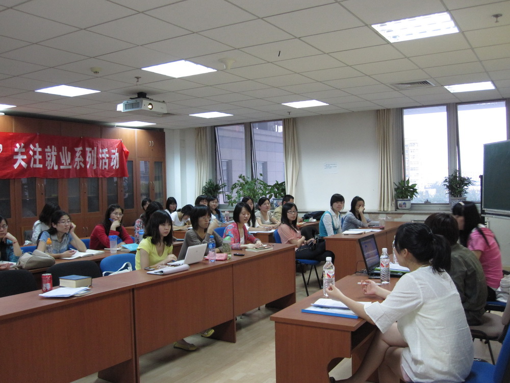“未来与您同行”关注就业系列之求职经验交流会在主楼B703拉开了序幕。此次交流会邀请到了三位即将毕业的07级硕士生,分别是刘英瑾、肖青和高艳同学来和同学们交流。