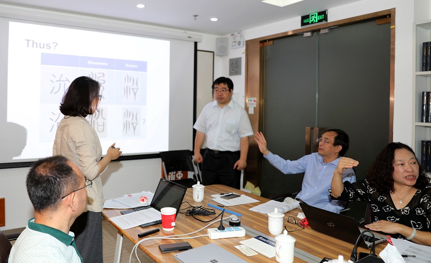 汉字研究与现代应用实验室举行,来自中国台湾东华大学的许学仁教授、台湾中华文化推广基金会魏林梅秘书长、日本广岛大学信息媒体中心铃木博士、国家工信部电子工业标准化研究所陈壮研究员、教育部语用所王晓明研究员、我校资深教授王宁先生、汉字实验室主任王立军教授、胡佳佳博士以及汉字实验室的部分人员参加了会议。 与会专家首先就小篆国际编码中相关术语的界定进行了充分的沟通,特别是明确了“说文小篆”编码区中“古文”“籀文”的具体指向。随后,专家们深入讨论了具体操作层面一系列问题的处理原则,诸如“古文”“籀文”缺位情况的处理、“古文”“籀文”高度相似情况的处理、残笔字形的修补、不合系统字形的微调、避讳字形的补全与回正、篆书重出现象的处理等等。会议讨论场面热烈,务实高效,在所有议题上都达成了高度共识,为小篆国际编码方案的进一步修订完善,并尽快提交WG2奠定了坚实的基础。