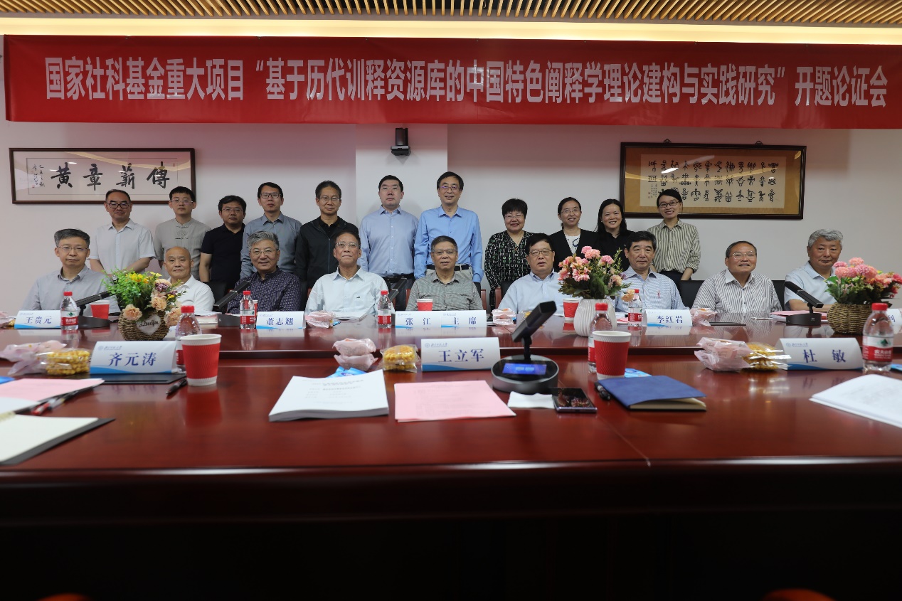 党委书记周云磊出席会议并致辞。评议专家组由中国社会科学院大学张江教授、中国社会科学院大学李红岩教授、北京语言大学董志翘教授、北京语言大学冯胜利教授、北京语言大学华学诚教授、上海师范大学徐时仪教授、中国人民大学王贵元教授、北京大学孙玉文教授、清华大学李守奎教授组成。评议专家组组长中国社会科学院大学张江教授主持开题论证会。
