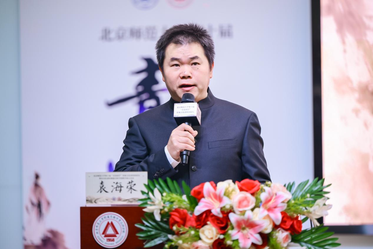 “青春国学”传统文化进校园论坛十年的重点工作,并重点介绍了2025年在教育服务领域取得的突破性进展:一是与陕西师范大学出版社合作,出版中华优秀传统文化启蒙读本《讲给小学生的中华服饰与礼俗课》(共两册),从服饰制作到礼乐风俗,从历史知识到处世智慧,构建全景式传统文化教育体系;二是深入新疆和田地区墨玉县开展调研并共建国通语体验馆,该项目已于2025年建成启用,获批国家语言文字推广基地特色项目,有效推动学术资源向实践服务转化,积极助力于国家通用语言文字推广战略。