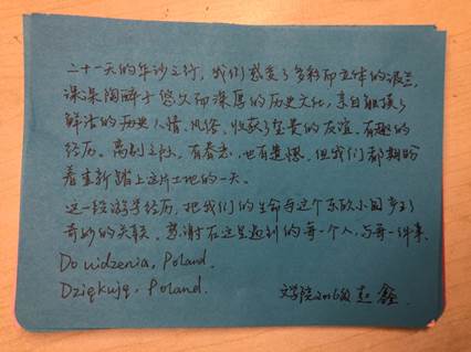 此次波兰华沙大学之行使我们受益匪浅,相信每位同学都能将这份珍贵的记忆转化为不断前进、努力学习、积极生活的动力。