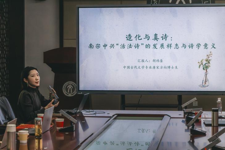 5049会议室举行。聂石樵奖学金执行人聂大昕老师,古代文学研究所马东瑶、李小龙、周剑之、谢琰、莎日娜、刘全志、颜子楠、吴沂澐、余丹、任刚、崔振鹏等老师出席,二十余位古代文学专业的硕士、博士研究生参加了此次颁奖仪式。仪式由中国古代文学所所长周剑之老师主持。