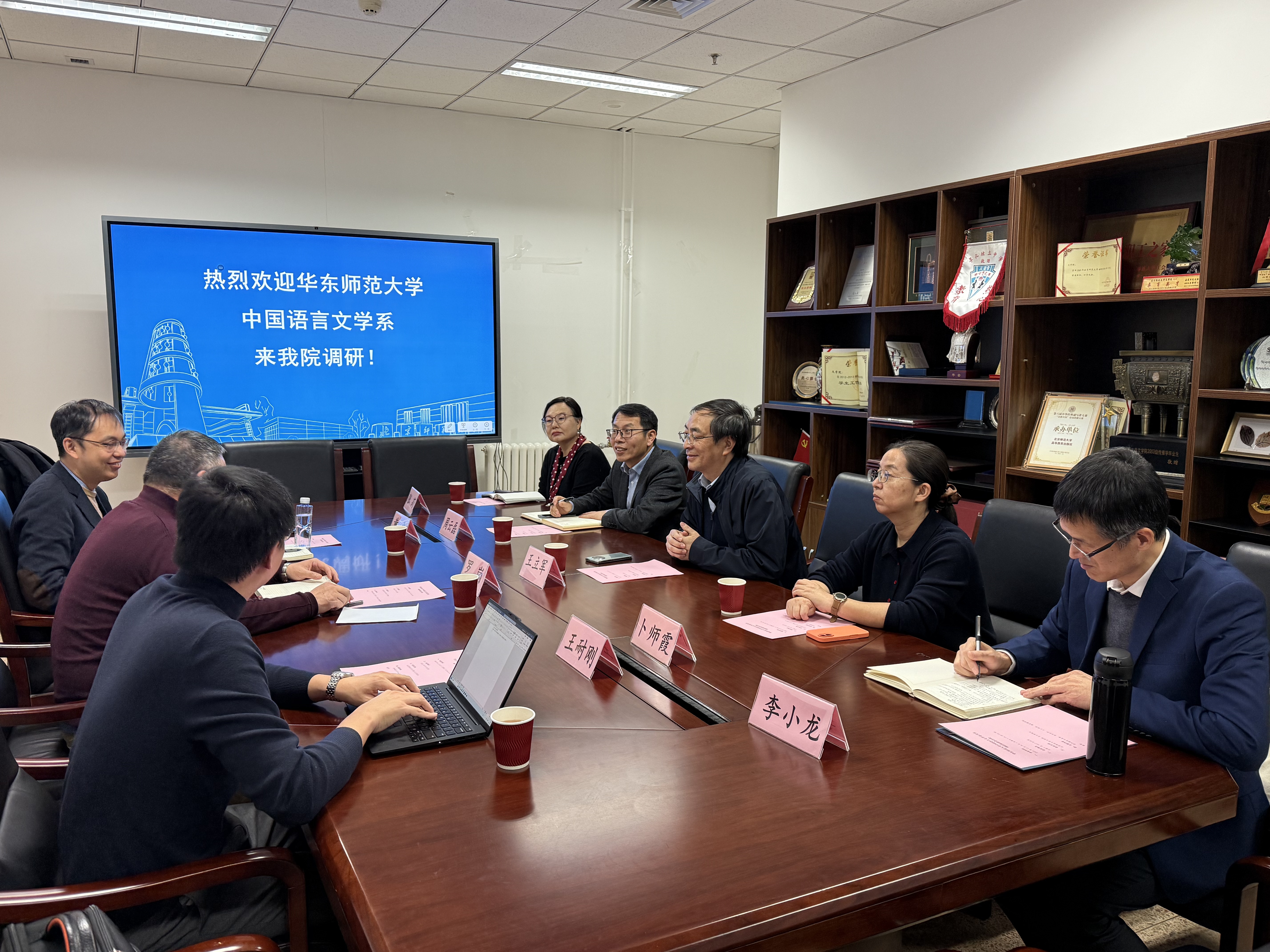 2025年12月26日下午,华东师范大学中国语言文学系系主任罗岗、副系主任黄平、系主任助理王耐刚一行3人前来漫画网站 调研。交流会由院长王立军主持。