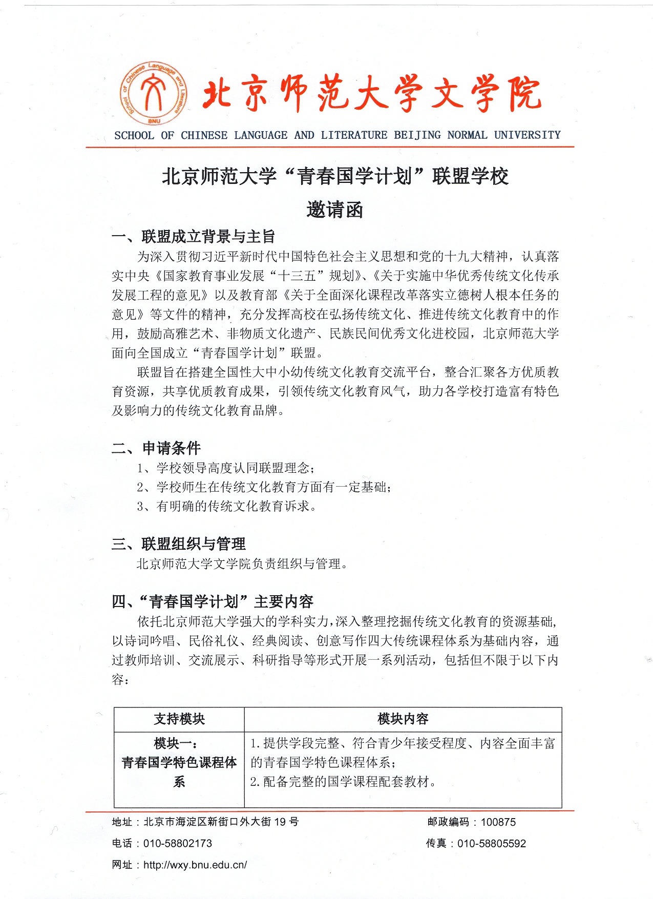 漫画网站 “青春国学计划”联盟学校 邀请函