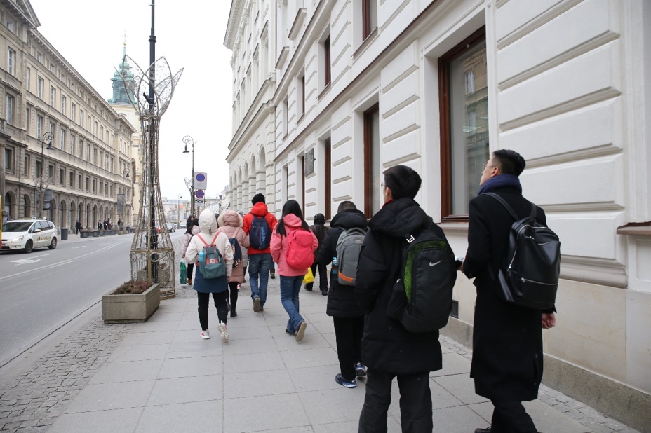 师生55人搭乘波兰航空公司的班机,清晨8点45分准时从首都机场T3航站楼起飞,“小文们”此行的目的地是——波兰华沙。 仿佛驾驶着时光机,“小文们”试图追逐已经逝去的七个小时。华沙时间15日下午3点40分,飞机平安抵达肖邦机场。波兰位于欧洲大陆中部,华沙作为首都,不仅是波兰的政治中心,也是科学、文化汇集之地。诺贝尔物理学奖及化学奖的获得者居里夫人、著名音乐大师肖邦等都曾经在这片土地上生活。 1月16日,“小文们”正式踏入了华沙大学的校园。华沙大学是中欧顶尖高等学府,也是波兰最知名、规模最大的国立大学,至今已有两百余年的历史。华沙大学不仅培养出了钢琴家肖邦,而且还有以色列国父戴维·本·古里安、世界语创始人拉扎鲁·柴门霍夫、诺贝尔经济学奖获得者里奥尼德·赫维克兹等杰出校友。 当天下午,华沙大学对外波兰语言文化中心副主任彼得·卡亚克博士主持开班仪式,热情欢迎“小文们”的到来。他首先带领同学们参观了华沙大学校史馆,并图文并茂地讲述了中波合作开展波兰语言文化教育的历史和现状。其后,在古典而庄严的讲堂中,卡亚克博士为大家介绍了随后二十天充实紧凑的学习日程和丰富多样的课程设置。他对同学们提出了中肯的建议,希望同学们都能拥有问题意识和合作学习的精神,祝愿大家能够在这二十天的时光里有所收获、有所成长。 华沙大学安排的课程让“小文们”感到兴奋和期待,未来三周“小文们”将在异国的新奇土地上领略波兰独特的风物与人情,感受别样的社会与生活,汲取知识,体验文化,沟通交流,展现漫画网站