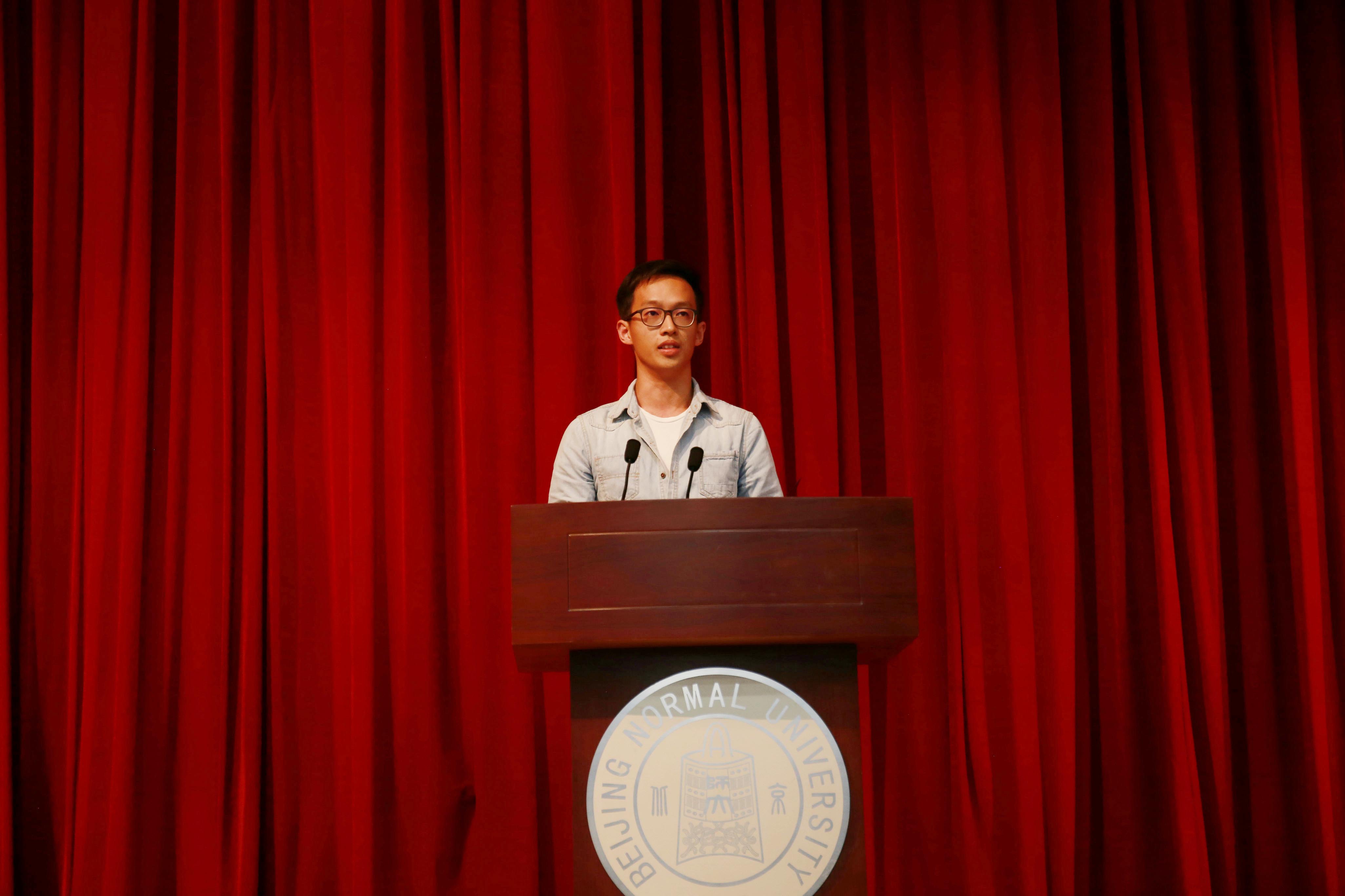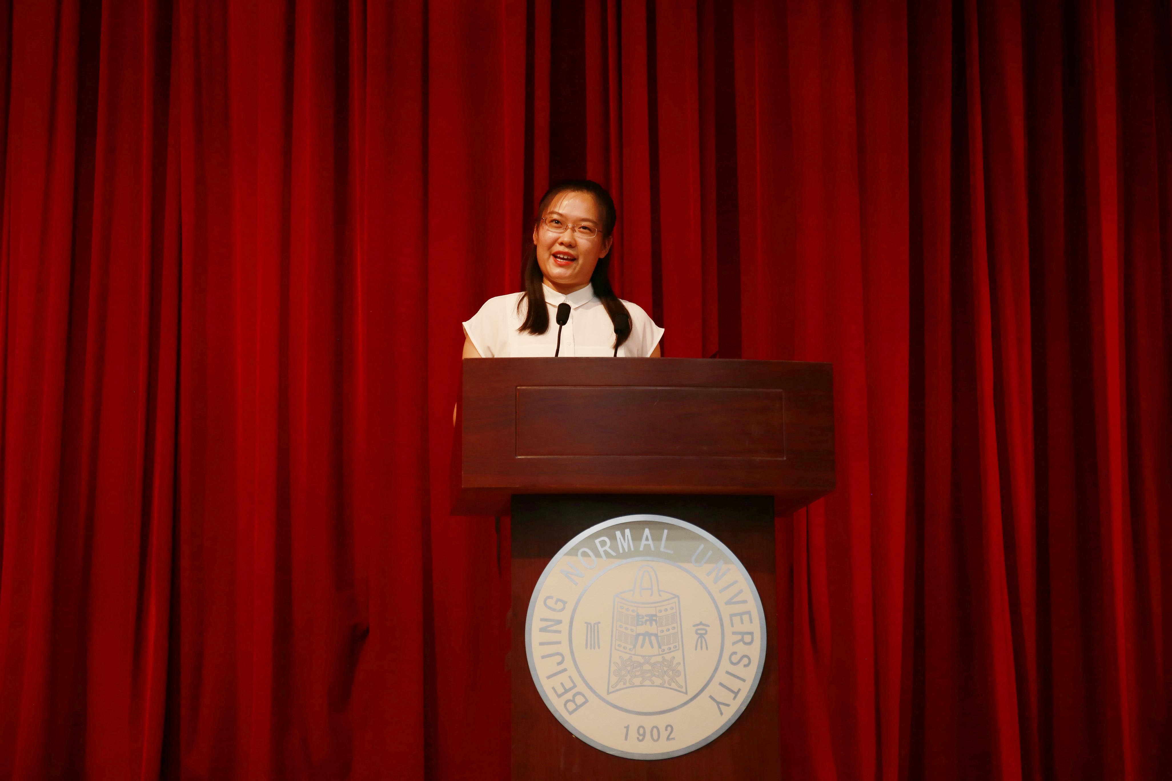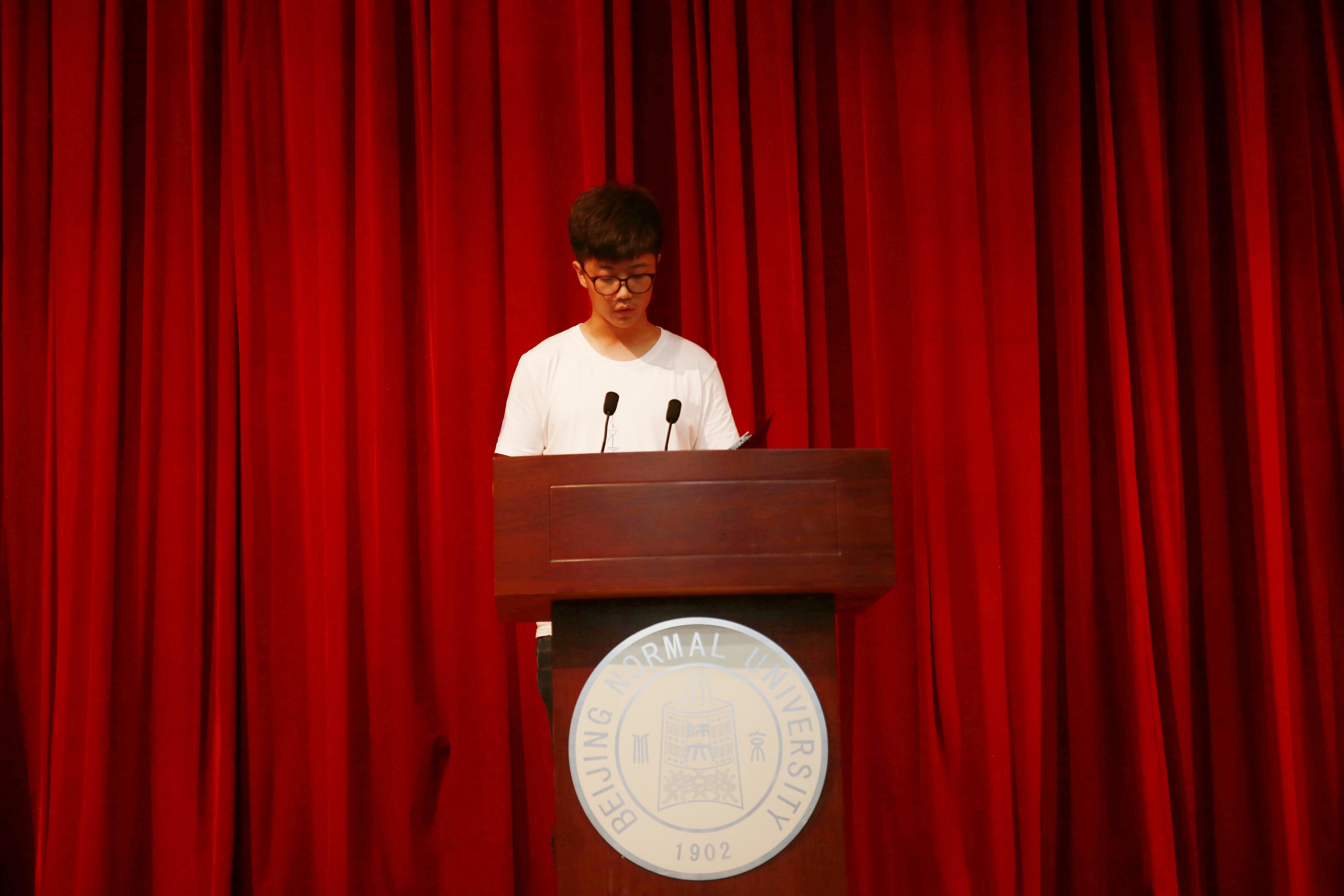 作为国内历史最为悠久的中文院系之一,拥有众多杰出的校友和一流的师资力量,代表了中国语言文学学科最高水平,他希望全体新生们都能够拥有深厚的传统文化根基和广阔的国际视野,用青春朝气使传统文化更具活力。 苏童结合在师大学习的切身体验,向同学们阐述了对大学的理解和敢为。他表示,大学生活是理想生活的第一道山峰,所有的理想都是建立在教育之上,“大学校园不是用来漫步的,而是用来攀登的”。苏童勉励广大新生珍惜青春年华,传承好北师大的优良学风,用“厚道”的为学方式,以“厚”求道,求“厚”得道,尽自己的能力谱写属于自己的青春之歌。 在校生代表、现代文学专业博士生赵静同学为新生讲述了美好的师大故事,向同学们分享了学习方法和生活经验。她鼓励新生要惜时,在有限的时间里充实自我、提升自我;要惜人,珍惜大学生活上的领路人,孜孜求学、不耻下问;要多思多想多交流,进行思维碰撞;要加强锻炼,拥有一个强健的体魄和真诚富足的人生。 留学生新生代表黄进泰同学表示,作为华人,他深知肩上传承中华文化的使命,将在大学生涯中,努力珍惜和积极争取各种机会,持之以恒的完成自己的学业。他号召同学们做到知行合一,既要仰望星空,也要脚踏实地,胸怀鸿鹄之志,亦忌好高骛远。 本科新生代表赵锐同学表达了对大学生活的美好憧憬和对北师大漫画网站