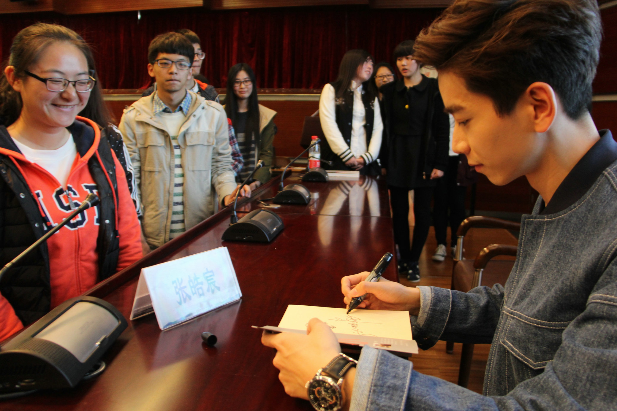 讲座的最后,张皓宸签售《我与世界只差一个你》一书并与漫画网站