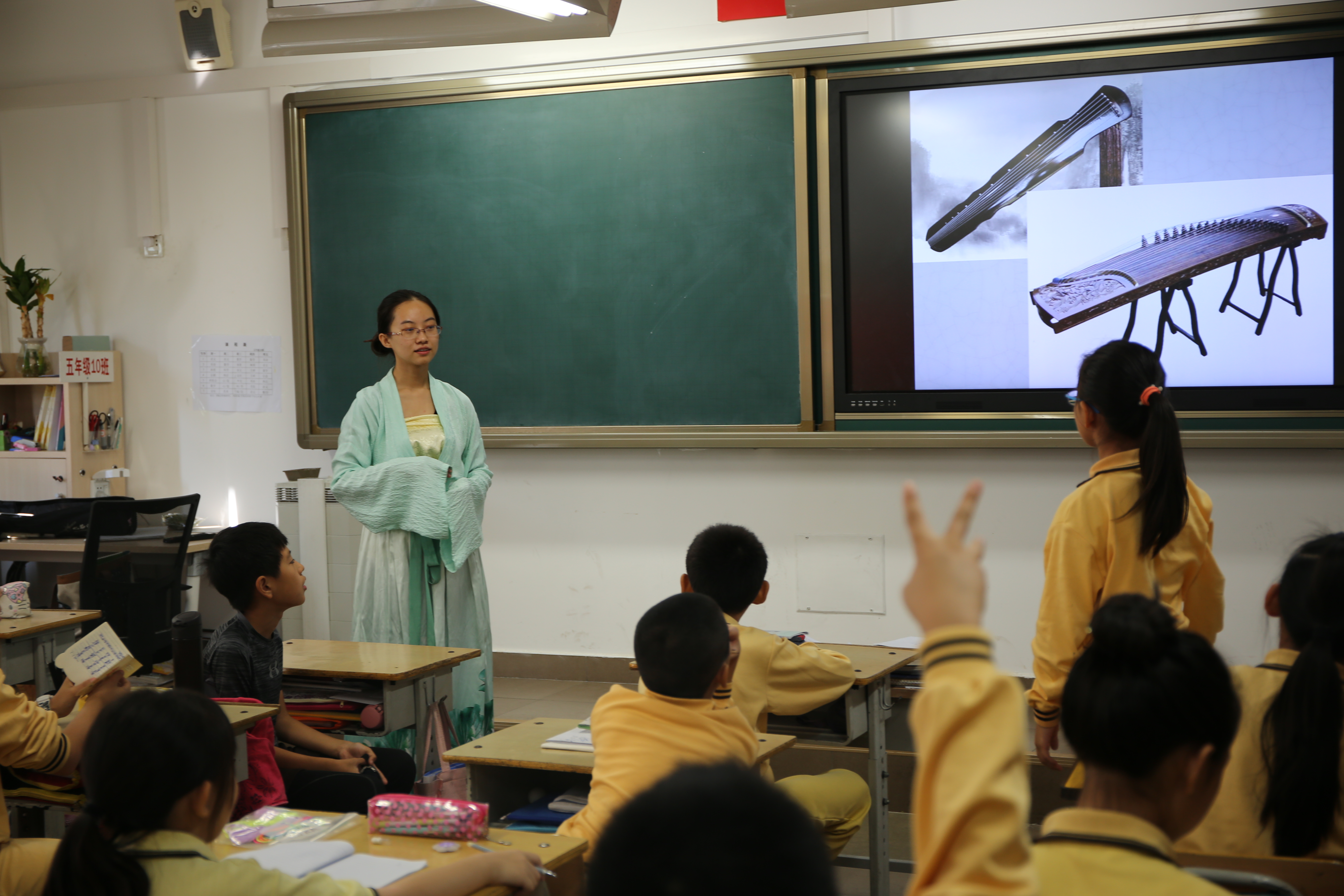 选修课分为7大模块,包括“古典诗词吟唱体验”、“汉服文化展示与汉服周边手工制作”、“古琴的音、形、史”、“中国传统民族乐器介绍与体验”、“昆曲介绍及表演体验”、“民俗故事导读及民俗手工艺制作体验”、“经典选篇导读”等。在分模块教学之前,7家社团还在二小礼堂为全体参加选修课的同学进行了集中展示和宣讲。