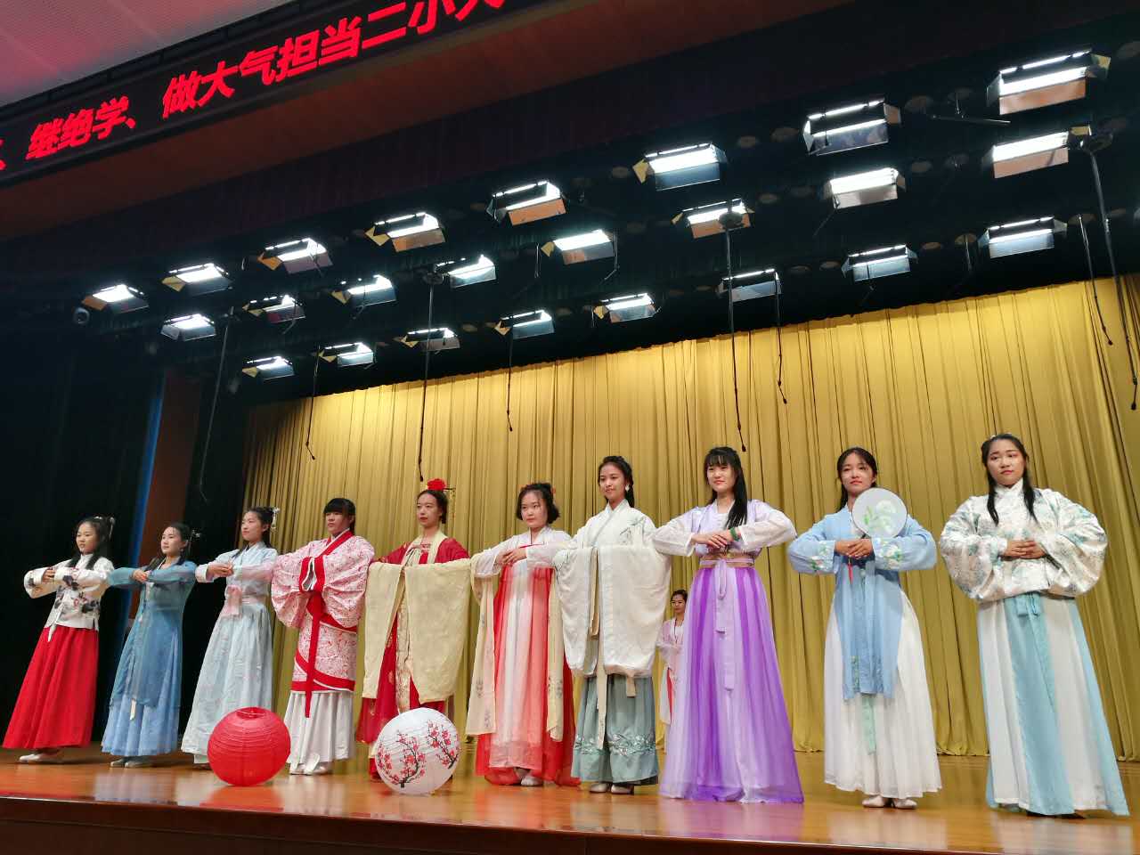 研究生刘智晗带来了歌曲《龙文》,“宫商角征羽,琴棋书画唱,孔雀东南飞 织女会牛郎,深爱这土地,丝路到敦煌,先人是炎黄,子孙血一样”,唱出了师大学子与二小学子一道,大手拉小手,共同学国学的美好展望。