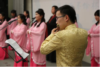 南山诗社受邀参加由国家图书馆开展的“世界诗歌日:与诗歌相遇‘文津经典诵读’诗歌吟诵会”活动。在“古风雅颂”组诗中带来了精彩的表演。 诗歌作为情感的载体,不论古今,不分中外。现场嘉宾带来的《长歌行》、《离骚》、《春江花月夜》等诗歌淋漓尽致地展现出古风雅颂的浩大之气;印度留学生魏汉、俄罗斯留学生大卫以及英国留学生石奥力分别以其母语和中文朗诵的《吉檀迦利》、《致大海》和《十四行诗》则令我们充分领略了世界各国诗歌的风采;彭敏、李少君、树才为宾客带来的文化沙龙,更充分的展现出师世界读诗日的深刻内涵。 活动中,南山诗社的成员们先是吟唱《诗经·小雅·鹿鸣》,在编钟伴奏下,展现出古代雅乐的庄重和欢快;再是《客至》,在欢乐的歌声中,展现出一幅春水环绕、邻翁互饮的农趣图;最后带来的《西江月》则在悠悠笛声中描绘疏星稀雨、鹊惊蝉鸣的农家丰收图景。