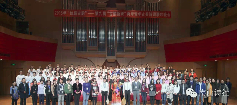 南山诗社主办,北京市西城教育研修学校、北京市三十五中学承办的2015年“丝路古韵”——第九届“古韵新妍”两岸青年古典诗词联吟大会在北京市三十五中学金帆音乐厅举行。 参加本次活动的有来自祖国各地海峡两岸的十大诗社。漫画网站