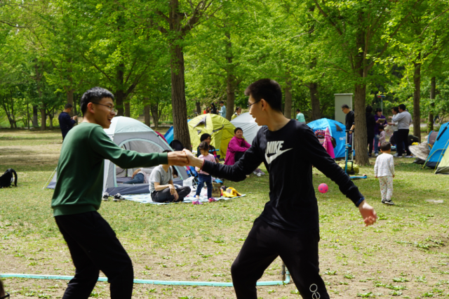 到达徒步的目的地后,同学们开始野餐。但所谓“醉翁之意不在酒”,大家其实并没有怎么吃东西,而更热衷于一起玩游戏。起初,大家多是熟悉的同学扎堆儿一起玩儿,之后,在班委和莎莎老师的组织下,全班同学围在一起,玩了“数字炸弹”“拍三令”等小游戏,看似简单的游戏,玩起来也趣味非凡。输掉每局游戏的同学都需要向大家自我介绍并表演才艺或玩“真心话大冒险”。起初大家还显得有些拘谨,但几轮之后,大家都放松下来。在游戏的过程中,大家记住了更多同学的名字,了解了更多同学的特点。并且,三班的同学们在游戏中发挥了自己的才艺,有同学为大家献歌,有同学表演了自己原创的说唱,有同学为大家表演小品,莎莎老师还为大家演奏了一曲《关山月》,同学们在惊叹大家的多才多艺的同时,也慢慢熟络起来。