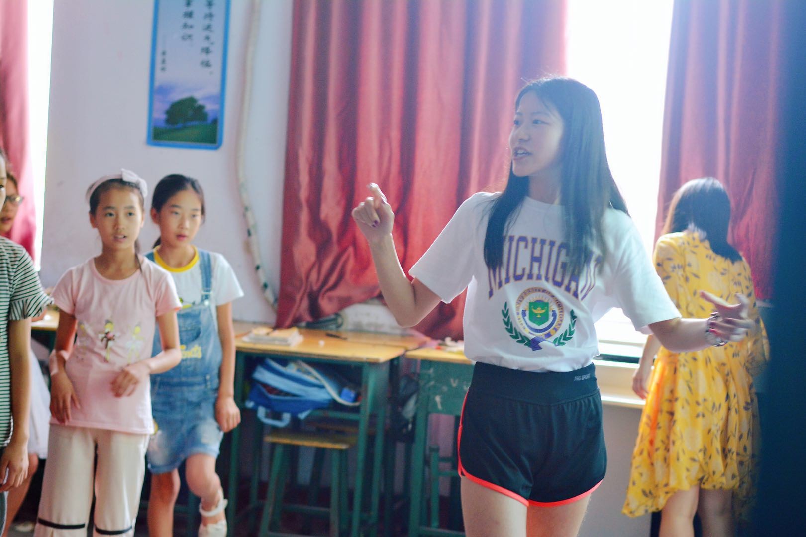 支教队全体人员以及桥上乡中心学校师生共计180余人参加活动。 聂阳欣代表北师大全体支教成员进行了发言,介绍了支教与调研活动的基本情况,并宣誓本次支教活动会恪守师大人“学为人师,行为世范”的准则,给桥上乡中学师生带来不一样的体验。 ·支教回顾 启动仪式结束后,壶关县领导、桥上乡中学校长、代表老师们与支教团成员就具体的交接工作进行交流。本次支教活动分为两个阶段,7月17日至23日为支教活动,7月24日至25日为调研活动。 支教队全体成员针对桥上乡中学的具体学习情况安排了支教课程,包括写作阅读课、中国城市概览、逻辑思维训练、国际音标入门、诗词吟唱、英语技能训练、趣味英语、基础地图认知、心理健康教育、摄影理论与鉴赏、山西历史文化、阳光体育运动等文化基础课程,此外还有中国书画鉴赏、爵士舞入门、英文影视鉴赏等综合素质拓展课程。 ·漫画网站