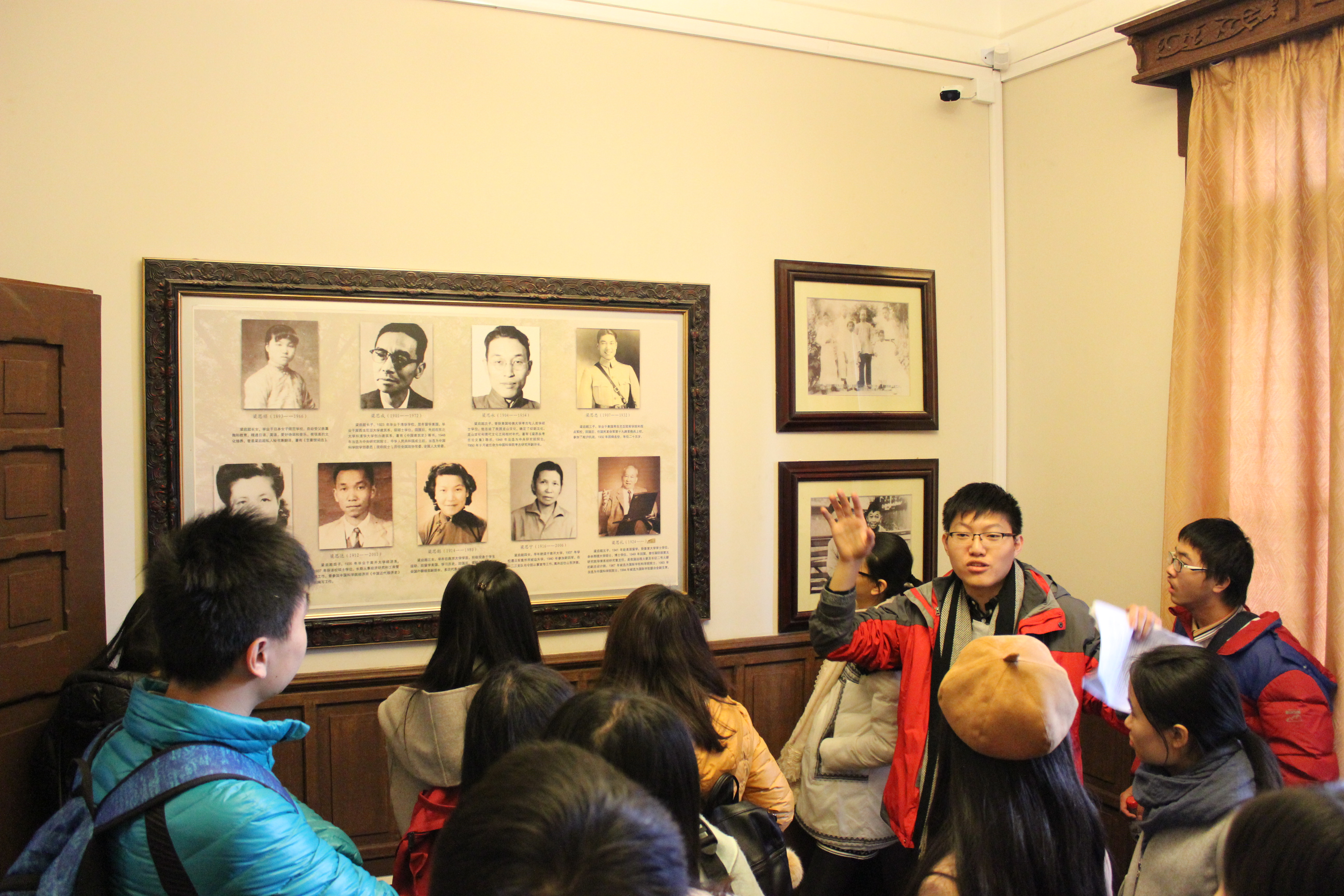 离开梁启超故居我们去往参观曹禺故居,故居建于1910年,前后两座二层意式风格建筑。在曹禺故居中,研究生会的学生骨干们带领我们一起参观。在故居的陈列展品中,我们发现了曹禺与戏剧的不解之缘。曹禺继母酷爱看剧,从小便带着曹禺去看戏,曹禺早早地就接触了大量的话剧。在求学过程中,曹禺曾扮演女角罗拉,又考入清华大学英文系,大四时创造话剧《雷雨》,声名鹊起。抗战时期的曹禺创作了不同于原先剧场艺术的《蜕变》话剧,展现出黑暗的世界经过共产党的努力变为光明的世界的历史过程,具有鼓舞性和英雄主义的赞美性。建国之后,曹禺于1978年创造出了最后一部作品《王昭君》,将历史上的昭君出塞改编成了勇于自我选择的喜剧。在参观讲解过程中,研会团体中专门研究曹禺的徐圣洁同学,其对于曹禺戏剧如数家珍,对于曹禺创作的发展过程夹叙夹议,为同学们带来了异彩纷呈的讲解,还引发了其他参观者的跟随聆听。