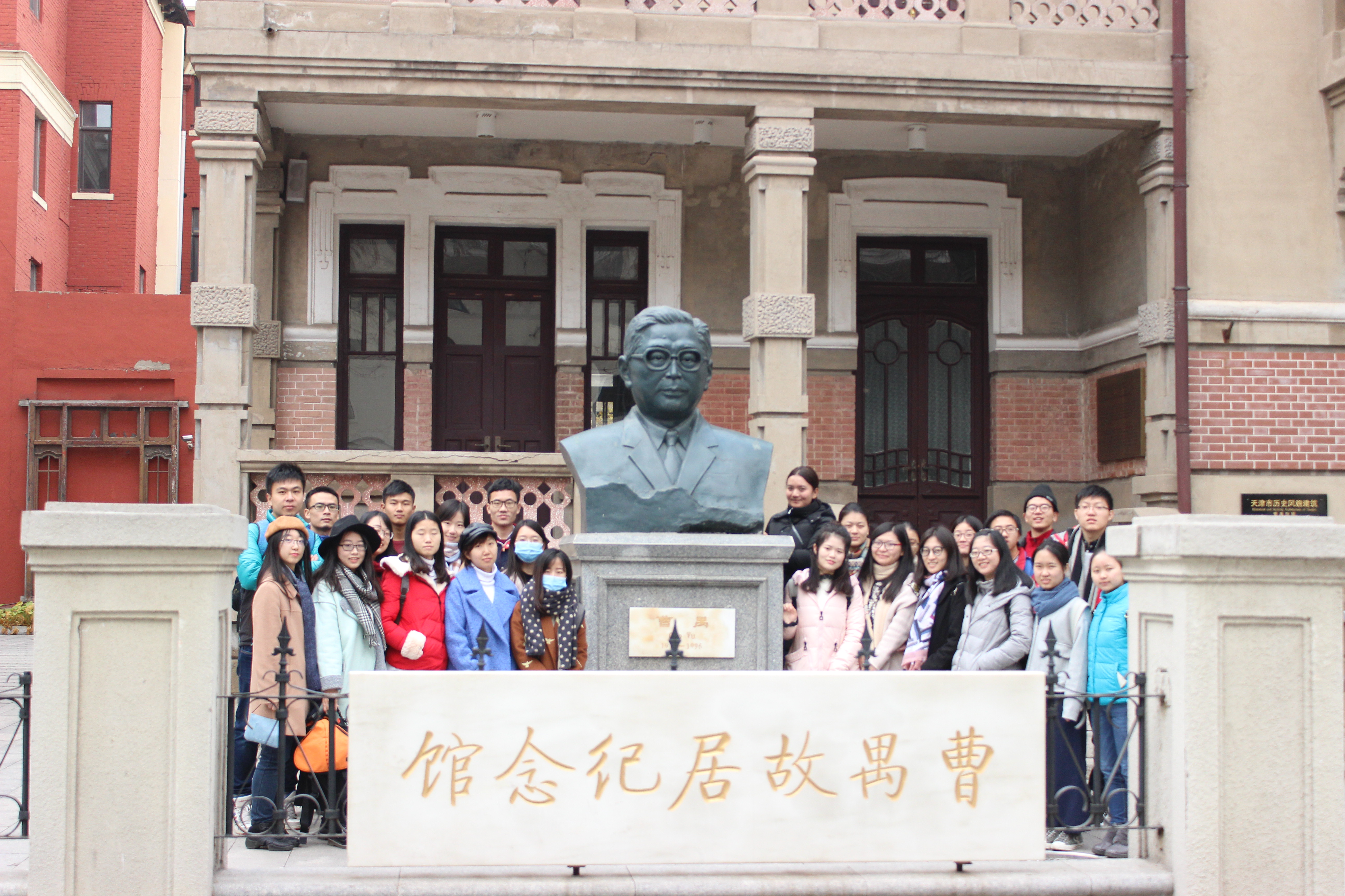 的大力支持。 第一站:五大道 下午,我们走进天津大学与南开大学的校园,进行文化交流。天津大学前身为北洋大学,始建于1895年10月2日,是中国第一所现代大学,开中国现代高等教育之先河,素以“实事求是”的校训、“严谨治学”的校风和“爱国奉献”的传统享誉海内外;南开大学,肇始于1904年,正式成立于1919年,是由严修、张伯苓创办的综合性大学。1937年校园遭侵华日军炸毁,学校南迁,在湖南长沙合组国立长沙临时大学,1938年迁往云南昆明,更名为国立西南联合大学 ,为中华民族振兴和国家富强作出了不可磨灭的重要贡献。在静静矗立的北洋大学堂建筑与周总理挥手致意的雕像前,我们仿佛看到了一位位中华儿女为祖国拼搏奋进的身影。 第三站:周恩来邓颖超纪念馆 在参观完大学之后,我们来到了周恩来邓颖超纪念馆进行参观学习。纪念馆用文字、图画、蜡像等方式介绍了总理与夫人不平凡的一生。在参观过程中,党支部的学生骨干们带领我们一起参观,我们先后参观了周恩来总理生平展“人民总理周恩来”、邓颖超专题展“邓颖超—20世纪中国妇女运动的先驱”;西花厅专题陈列厅设有复原陈列和主题文物展“伟大的情怀”。党支部崔嘉琪同学与余丹同学在参观的过程中,没有局限于眼前展品,而是将总理与夫人的一生事迹与党的历史贯穿联系起来,将他们个人的历史融入党的发展历史,从这一历史视角出发,我们看到了一幅波澜壮阔的党的历史画卷,深刻地感受到了党的艰苦卓绝的发展之路与伟大的奋斗历程。 第四站:同悦兴茶社 晚上,我们前往天津同悦兴茶社聆听相声。天津曲艺文化发达,素有曲艺之乡的美称,其相声的表演特色自成一派,以讽刺见长,说逗俱佳,火爆热烈。在娱乐方式不断推陈出新的现代,相声这个在天津流传已久的娱乐方式,至今是许多天津人民休闲娱乐的首选。当晚,我们与众多听客坐在茶社里,听着津味儿十足的相声。相声演员轮番上阵,说学逗唱异彩纷呈,笑声掌声接连不断,这让我们充分感受到了相声的真正魅力,也让我们对津门文化有更深刻的体验。 第五站:梁启超故居 第六站:曹禺故居 第七站:西开教堂 随着西开教堂的参观完毕,天津的文化交流之行亦随之结束。坐在归程的动车中,回望这两日的实地考察学习,短暂却又丰富。我们在五大道历史文化街感受异域风情,在天津大学南开大学体悟爱国之训,在周邓博物馆缅怀总理与夫人奋斗的一生、我党波澜壮阔的发展历程,在同悦兴茶社聆听相声体验民俗文化,在梁启超故居感念任公的家天下一体的爱国情怀,曹禺故居感受戏剧的魅力。望着窗外渐浓的夜色,今日正在消逝,新的今日即将到来,今日何其多,多少个今日才能抵达那一个明日? 答曰:无负今日。