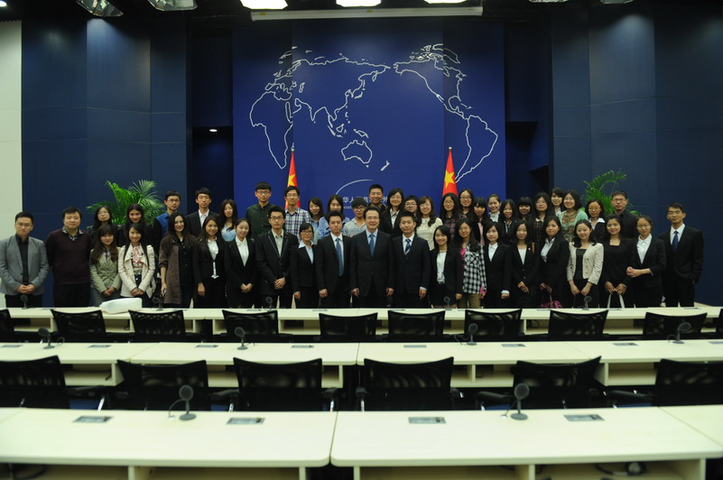 研究生会应外交部公共外交办公室邀请,与中国人民大学学生代表共同参加了中国人民共和国外交部2014年开放日活动。 在外交部新闻司工作人员的热情接待与细致讲解下,参观团首先观看了中国外交六十年图片展,展览回顾了建国初期中国外交攻坚克难的艰辛历程,改革开放以来扩大对外交流的累累硕果,以及新世纪中国外交在新的历史时期所面对的机遇与挑战。其中不乏珍贵的历史档案原件和影像资料。随后,同学们参观了外国记者漫画网站,并走进蓝厅,旁听外交部例行记者发布会。外交部新闻司副司长、外交部新闻发言人洪磊就马航事件的最新进展进行信息发布,并回答了中外记者的提问。发布会后,洪磊副司长与学生代表合影留念,并就新闻发言人制度与同学们亲切交流。 外交部亚洲司、新闻司、翻译室、干部司等四位青年干部与学生进行了座谈,介绍了周边外交、公共外交、外交翻译和外交部干部考录等工作,生动讲 述外交工作的台前幕后、外交人员的酸甜苦辣,并回答了同学们关于外交形势、报考就业等方面的问题。座谈会气氛热烈,互动积极,交流深入。 本次活动是本学期漫画网站