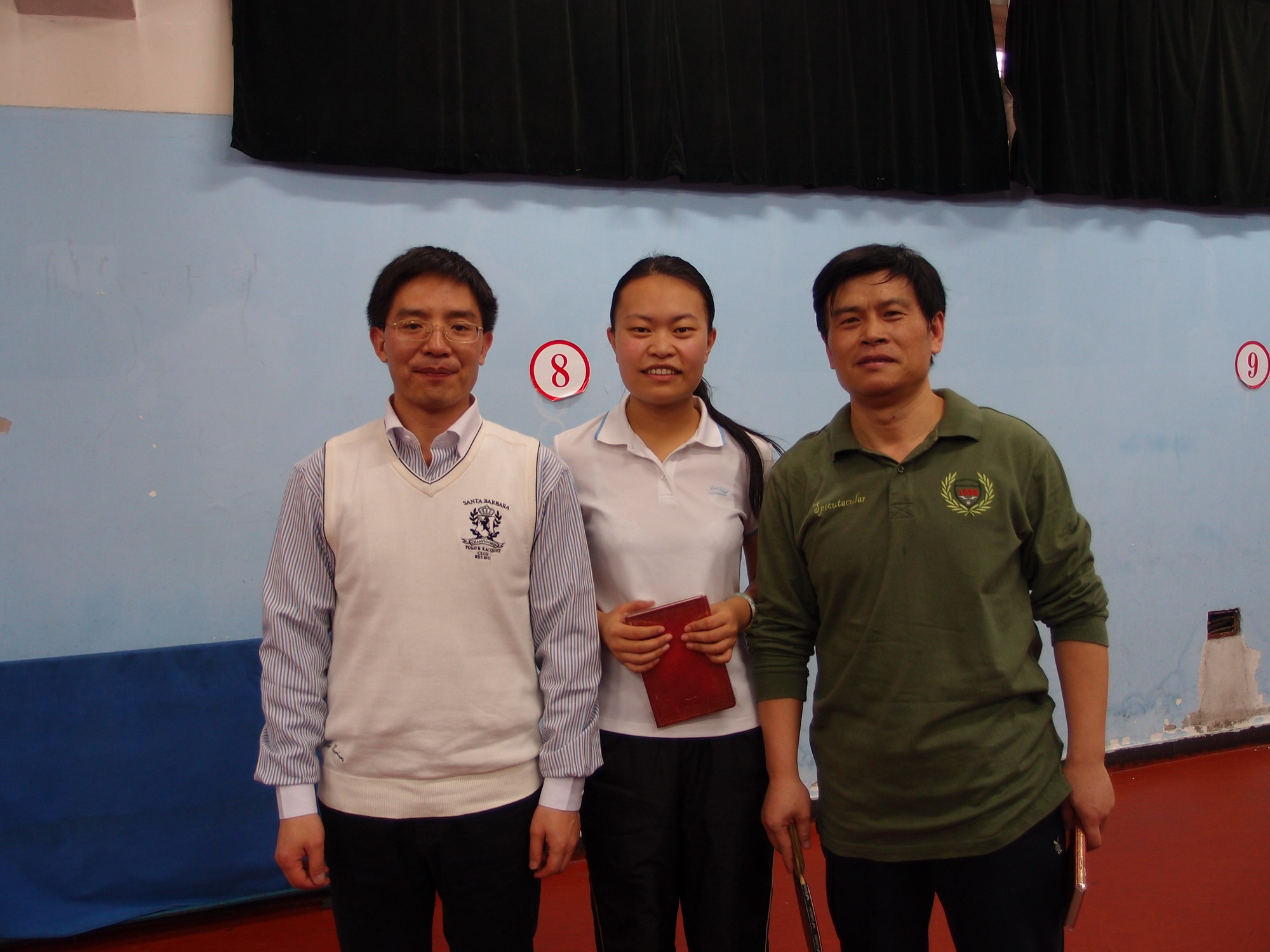 本次比赛首先分男生组和女生组进行比赛,比赛经抽签决定对手,一名学生选手对战一名教师选手。比赛采取五局三胜淘汰赛制,首轮决出七名优胜者,进入二轮后,加上直接晋级的选手共八名再次抽签决定对手,经二轮淘汰决出四名优胜者,其中女生组四名、男生组四名进入第三轮比赛,三轮两组分别决出两名优胜者,进入男、女小组决赛,决赛中分别分出男生组和女生组冠亚军,最后的大决赛是男女冠军对决,胜出者为本次比赛的总冠军。女生组教师代表有赵曦老师、陈珊老师和徐春姣老师,在一轮比赛中就非常遗憾地被淘汰了。男生组冠军是万建中老师,女生组冠军是谭清洋师姐。由万建中老师对谭清洋师姐,由于万老师实力太强,大家建议万老师每局让出六个球给谭师姐,最后总冠军头衔被谭清洋师姐不无悬念地斩获。比赛结束后,由本次比赛教工负责人张国龙老师给优胜者颁发奖品和纪念品,最后大家开心地拍照留念结束。