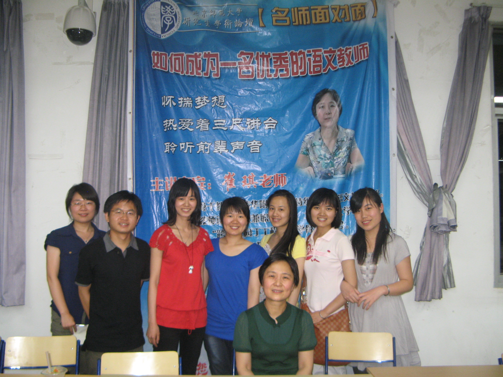 崔琪老师从教数十年,潜心钻研教学,所带班级的高考语文成绩在本校始终名列前茅,曾取得北京市第二名的好成绩。讲座中,崔老师用生动幽默的语言,根据自己对教学的独到领悟以及亲身经历,向同学们传授了成为优秀语文老师的经验。崔老师说,“作为一名教师,我们永远不要放弃自己的追求,要在追求的过程中是实现自己的价值,要做一个正直、磊落、表现真实自我的老师”。崔老师指出,在课堂上,对于文本的解读教师应该有自己的独特感悟,要让学生体会到语文课的乐趣,让他们在语文课上有所收获,因为生活即语文;在课后,要勤奋反思,做研究,要勤奋地记录教学过程中所发生的一切。崔老师深刻而独到的感悟,亲切真诚而又幽默的演讲方式,赢得了全场同学的阵阵笑声与掌声,让在场同学学到知识的同时,更感受到崔老师无穷的人格魅力。