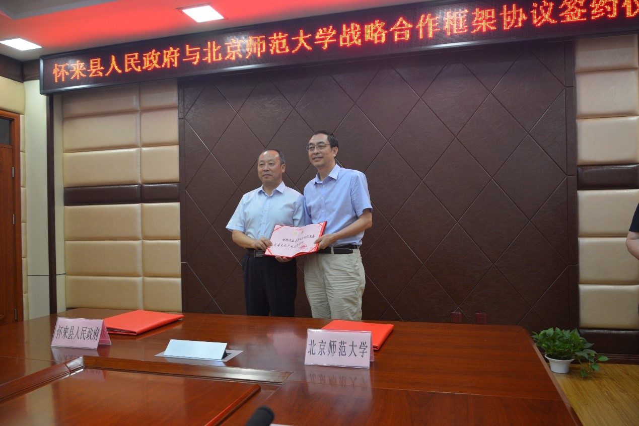 2018年9月1日,北师大资深教授王宁先生、汉字研究与现代应用实验室主任王立军教授等一行四人,赴河北省怀来县实地考察官厅水库国家湿地公园博物馆建设情况,并与怀来县人民政府签订了《中国文字文化产业发展战略合作框架协议》。怀来县县委常委、常务副县长、组织部部长王永代表县政府为王宁先生、王立军教授颁发了聘书,聘任两位老师为怀来县文字文化产业发展顾问。签约和聘任仪式由怀来县副县长、教育局局长黄晓静主持。 王永副县长介绍了怀来县的基本情况及经济文化发展现状。怀来县东临北京,区位优越,历史悠久,生态优美,交通便捷,京张高铁建成后将融入首都半小时经济圈。近年来,全县上下抢抓京津冀协同发展、京张携手举办冬奥会机遇,坚持“生态第一、创新引领、跨越赶超”发展道路,规划了“一湖三圈”空间发展布局,强力打造首都最优水源涵养区。怀来县特别重视文化建设,依托京津冀地区最大的官厅水库国家湿地公园,充分发掘本区域的历史文化资源,将生态建设和文化产业发展有机融合起来,形成良性互动。怀来县是东汉文字学家王次仲的故乡,未来将以此为切入点,重点推进怀来中国文字文化产业的发展。 王宁先生介绍了北师大传统语言文字学学科点的基本情况,包括学科点的学术传承、学术优势及其在国家语言文字规范、基础教育教学、汉字文化普及与传播等方面所做出的贡献,强调学科点秉承“敞开来、走出去”的理念,在精英教育、基础教育、国家规范及与地方合作实践中不断发展,提升了学科的优势和前进动力。 王立军教授重点就怀来县文字文化产业的发展及双方合作的内容作了介绍。汉字实验室作为双方合作的平台,将负责怀来县官厅水库国家湿地公园博物馆有关文字文化的展陈设计、怀来县文字文化产业发展规划及相关人才的培训等。鉴于与王次仲直接相关的文献资料较少,王立军教授建议此次展陈以王次仲命名,把王次仲作为整个展陈烘托的重点,将其放在中国文字发展、特别是今文字发展的历史背景中,突出其在汉字史上的重要地位,将其打造成为怀来文化产业的重要名片。 签约仪式后,王宁先生、王立军教授等一行在王永副县长等陪同下参观了官厅湖国家湿地公园及博物馆“漂浮之环”建设现场,充分了解了王次仲文字文化展馆的整体环境,为将来的展陈设计提供了更为直观的参照。 出席本次活动的还有怀来县法制办、金融办、国土资源局、林业局、文化体育广播新闻出版局、发展改革局、商务局、团县委、县政府督查室等有关部门负责人,以及北师大汉字实验室的温英明老师、许晶晶老师。