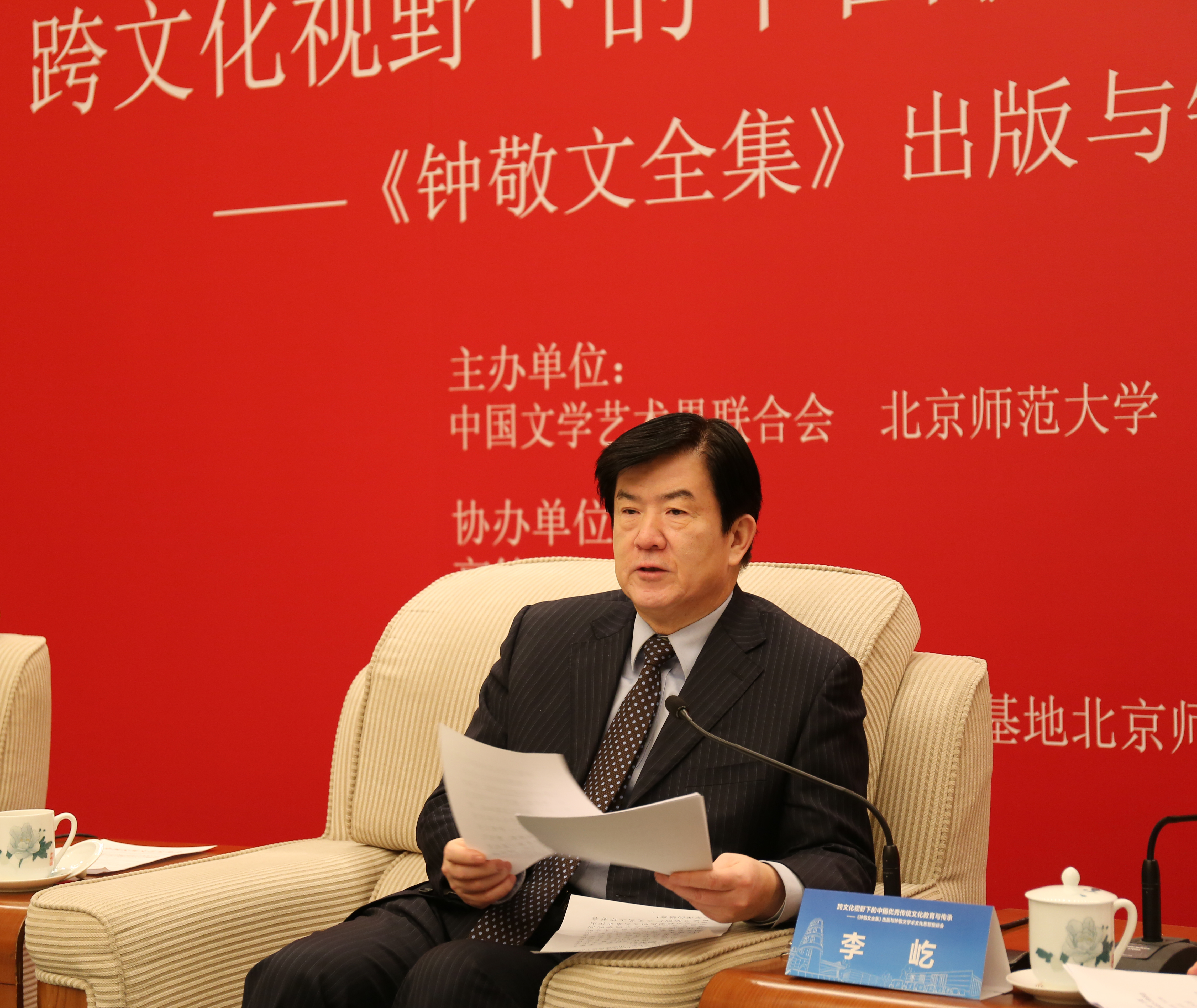 广大师生的榜样。今年适逢钟敬文先生诞辰116周年,这套《全集》,是北师大人隆重纪念与深情缅怀钟敬文先生的最好献礼。我们要继承钟敬文先生肩负千秋业的教育责任感,不辱使命,写好中国优秀传统文化传承创新的奋进之笔。 中国文联副主席、中国民间文艺家协会主席潘鲁生先生讲话(曹文瀚摄) 中国文联副主席、中国民间文艺家协会主席潘鲁生先生讲话。指出,钟先生长期参与组织和指导我国20世纪各时期的新民俗学运动与民间文学运动,是中国民间文艺家协会的主要奠基人之一。通过《钟敬文全集》的出版与研讨,总结中国民间文艺的发展历程,研讨新时代民间文艺的发展命题,具有重要意义,包括学习钟敬文先生的治学理念和学术思想,传承老一辈学人对民间文艺传承发展的强烈使命和责任;学习钟敬文先生的治学理念和学术思想,加强我国民间文艺发展的学科规划;学习钟敬文先生的治学理念和学术思想,以“人民性”和“中国特色”的中心理念指导我国民间文艺发展。 中国民间文艺家协会分党组书记、驻会副主席邱运华代读 中国民间文艺家协会原主席、著名作家冯骥才书面发言(曹文瀚摄) 中国民间文艺家协会原主席、著名作家冯骥才做了书面发言,由中国民间文艺家协会分党组书记、驻会副主席邱运华代读。他说,我本人上世纪八十年代就有幸认识前辈钟敬文先生。先生才学之高深,人品之纯净,令我景仰。他将自己长达一个世纪的生命时光全部奉献给我国民间文化研究与教育的事业,我们至今还在享用他的学术思想与学术成果。因此,将他一生如此丰厚与精深的文化创造,进行全面整体和科学有序的整理,是一项十分重要的根基性的工作。在钟敬文先生诞辰116周年的日子里,出版卷怢浩繁的《钟敬文全集》,意义重大。这既是对中国文化史和民俗学史一宗宝贵财富全方位的整理,也是对这位成就卓著的文化先贤一个含有敬意的纪念。我们要接过老一辈的精神遗产,汲取他思想、理论与学术的神髓,脚踏大地,背负时代使命,把我们从事的民间文化事业扎实地做好与不断推进。 高等教育出版社党委书记、社长苏雨恒先生讲话(曹文瀚摄) 高等教育出版社历时八年、精雕细刻、成功出版《钟敬文全集》,创立了出版高端大型纯学术系列著作的新范例。高等教育出版社党委书记、社长苏雨恒先生在讲话中指出,钟敬文先生是一代宗师,也高教社的优秀作者,从上世纪90年代开始,我们就他的著作出版与教材编写工作有了密切的联系,并出版了他主编的高校教材《民俗学概论》、《民间文学概论》和《民间文学作品选》,这些教材多年再版,一直受到高校师生的欢迎。2011年,漫画网站